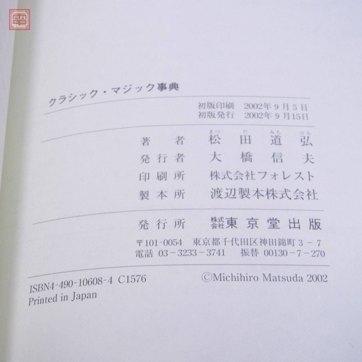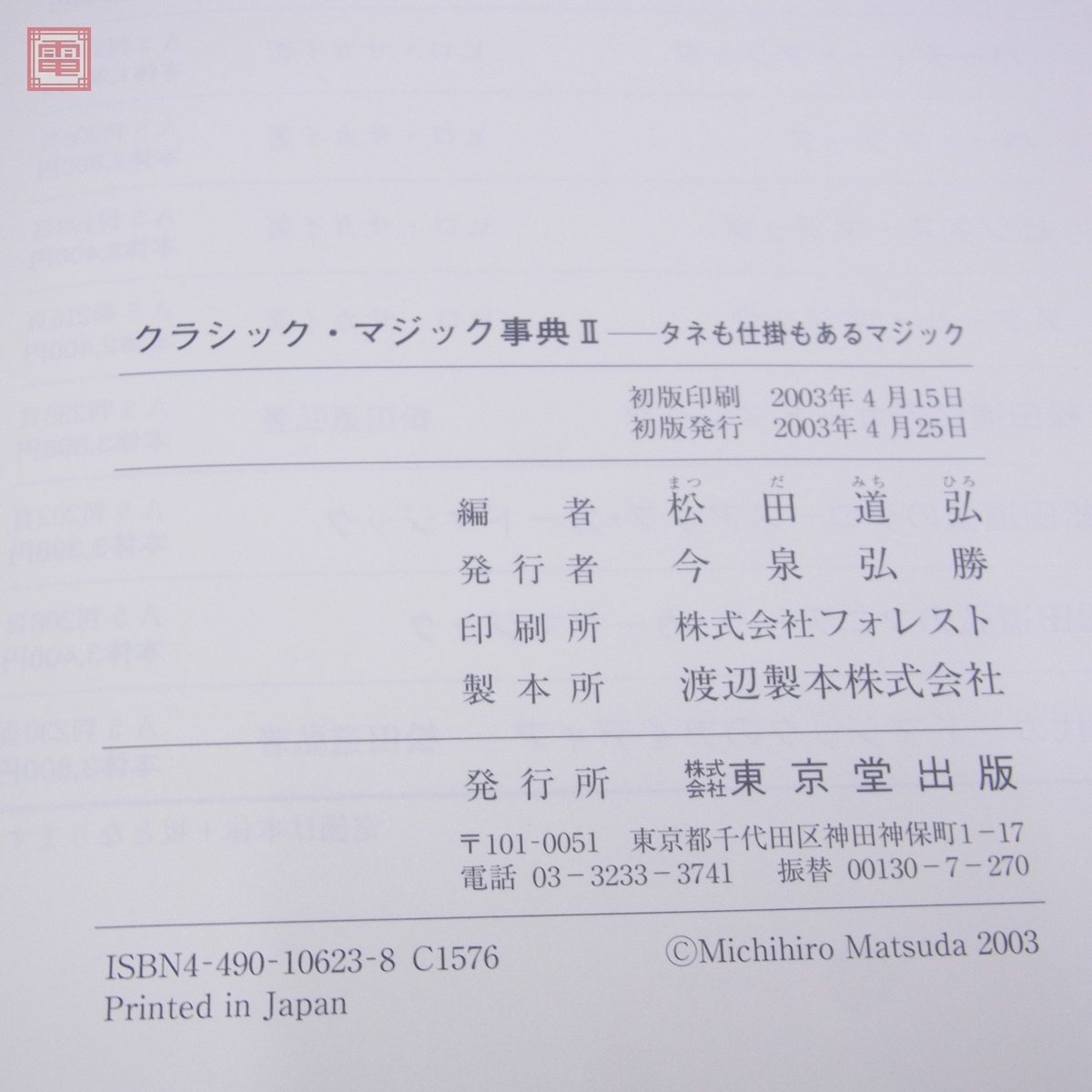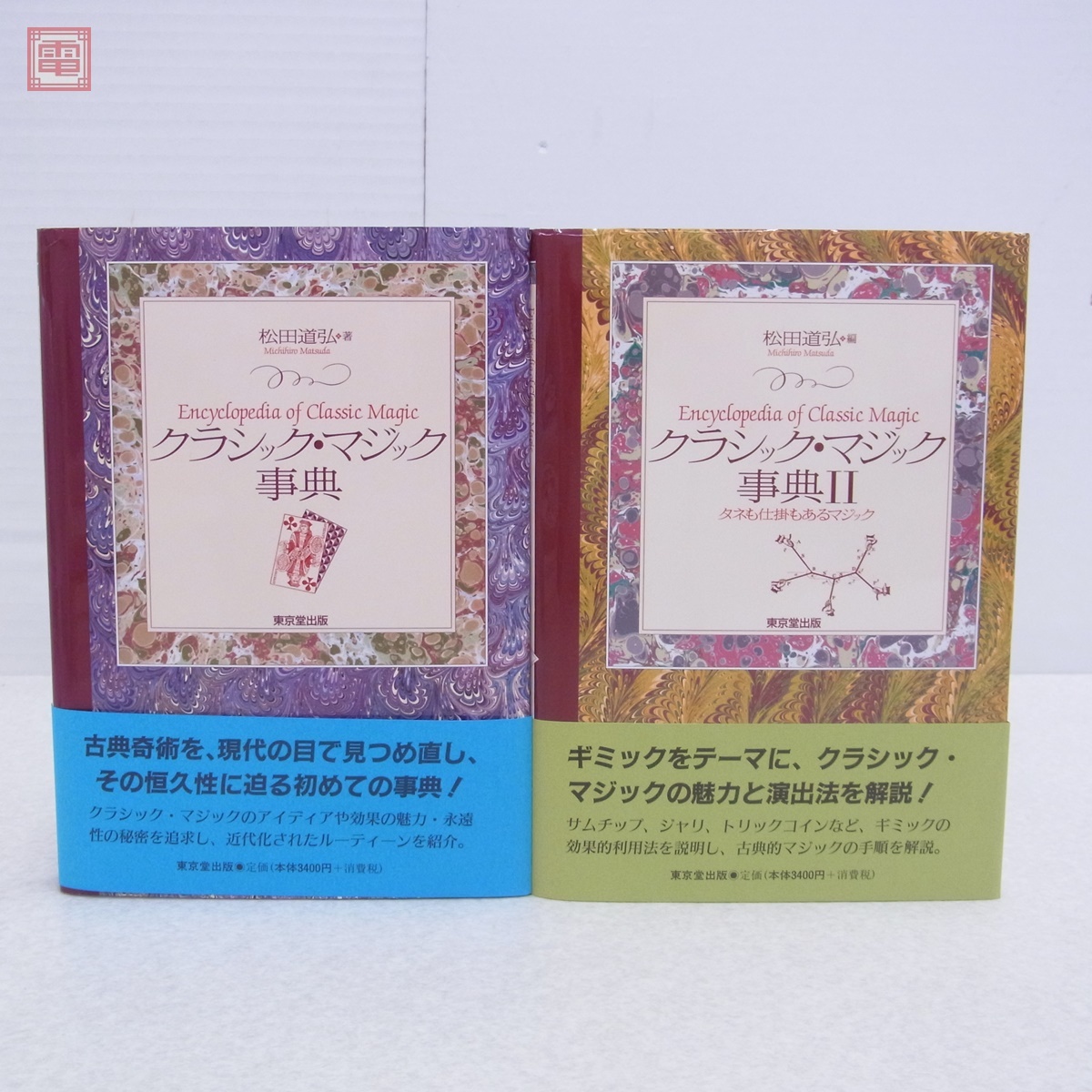 クラシック・マジック事典+II まとめて2冊セット 松田道弘 東京堂出版 2002年〜2003年発行 初版 帯付 手品 タネも仕掛もあるマジック ■スレ、ヤケ、汚れ等があります。 ■写真のものが全てです。付属物の有無や状態については写真からご判断ください。 ■付属物については細かいチェックはしておりませんので、万が一、欠品があったり余計な物が入っていたとしてもご了承ください。 ■商品到着後、当店の保証期間中は、商品及び箱や取説、付属品などを1つでも廃棄や破損をしないようにお願い致します。廃棄や破損をした場合、商品に問題があった場合でも対応や返金などの対処ができなくなります。 ■商品によりますが、発売されてから10年以上経過している中古品である事をご理解頂いた上でご入札をお願い致します。なお、新品や美品、また特記事項がある場合は別途明記します。 | |||