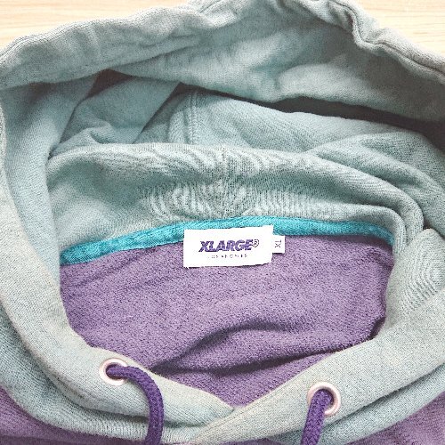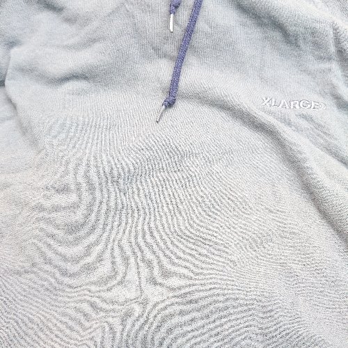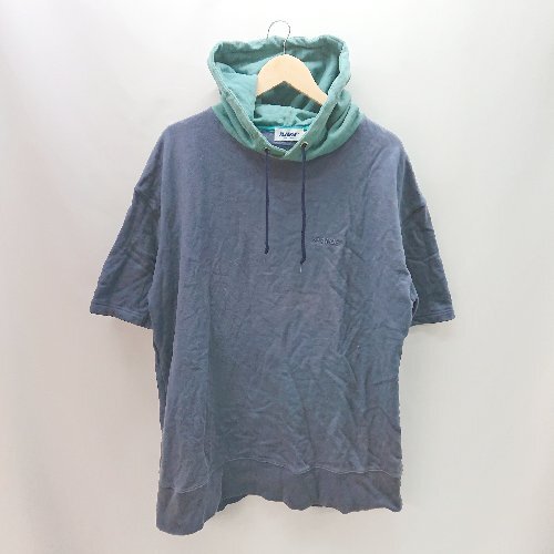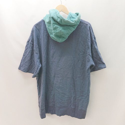 ◇ XLARGE エクストララージ フード ロゴ刺繍 カジュアル 半袖 パーカー サイズXL ネイビー グリーン メンズ E