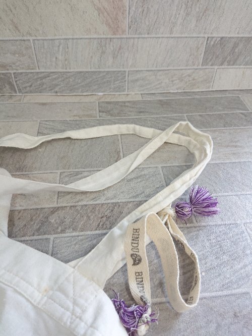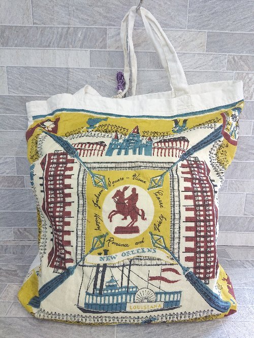 ◇ Θ BINDU ビンドゥー 柄 切替 トート バッグ ホワイト系 マルチ レディース E