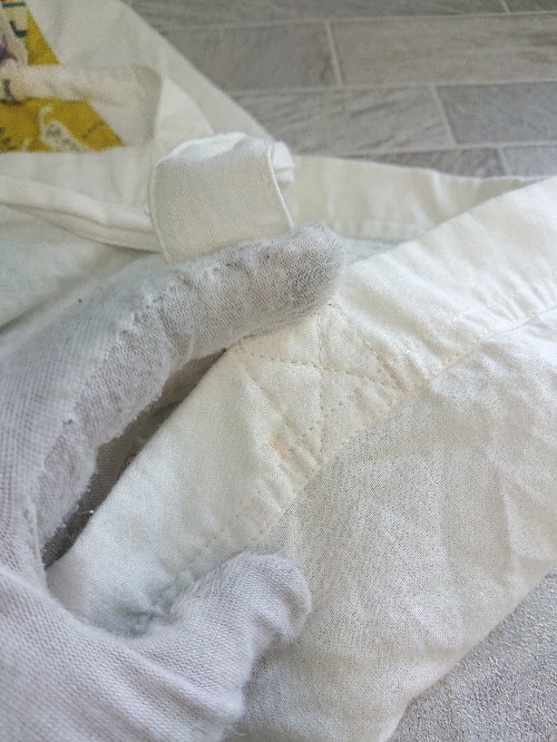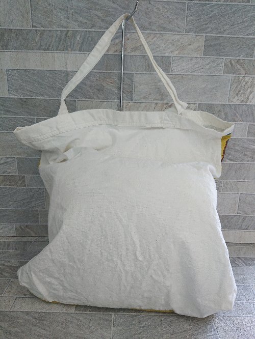 持ち手や白地部分に汚れあり。内側に汚れあり。