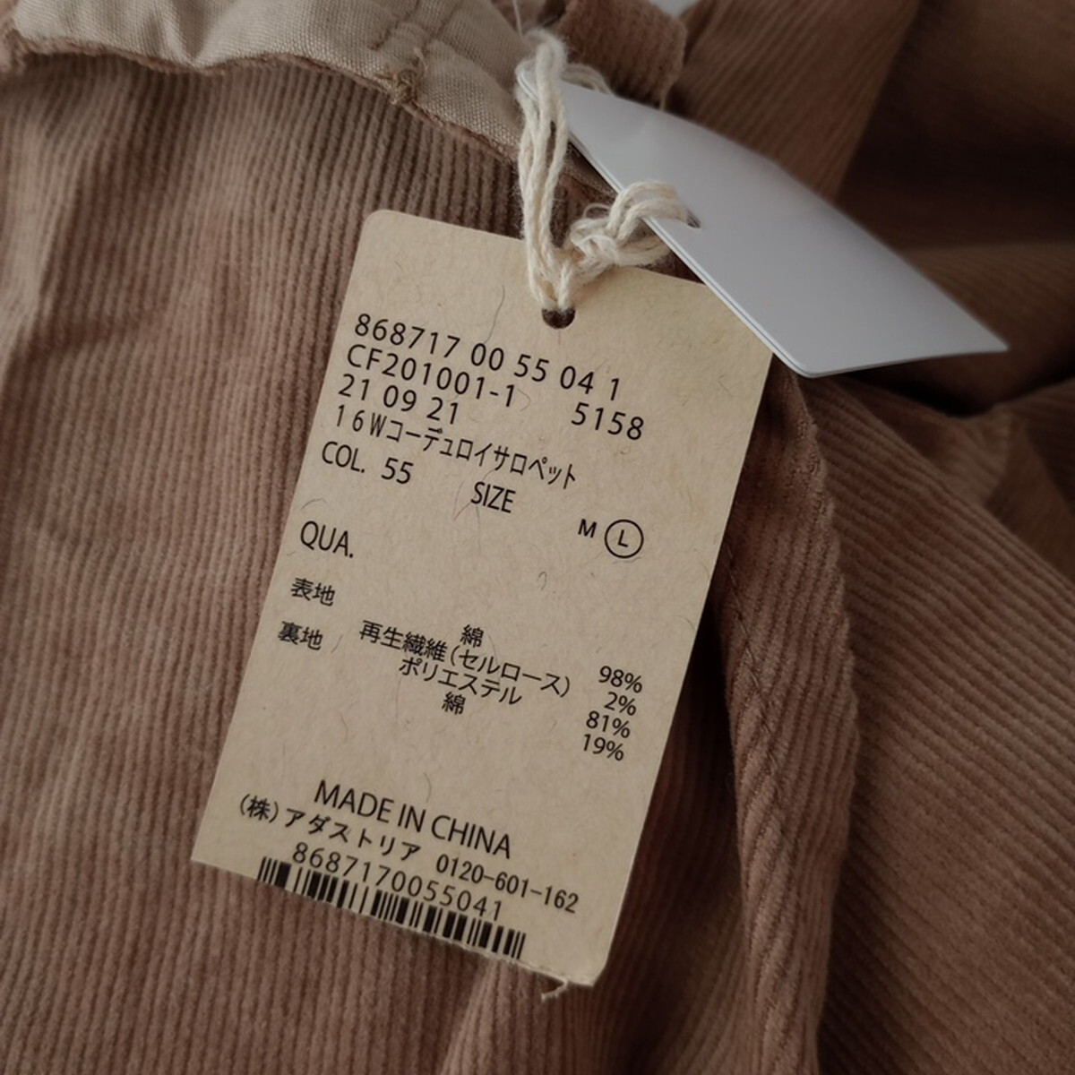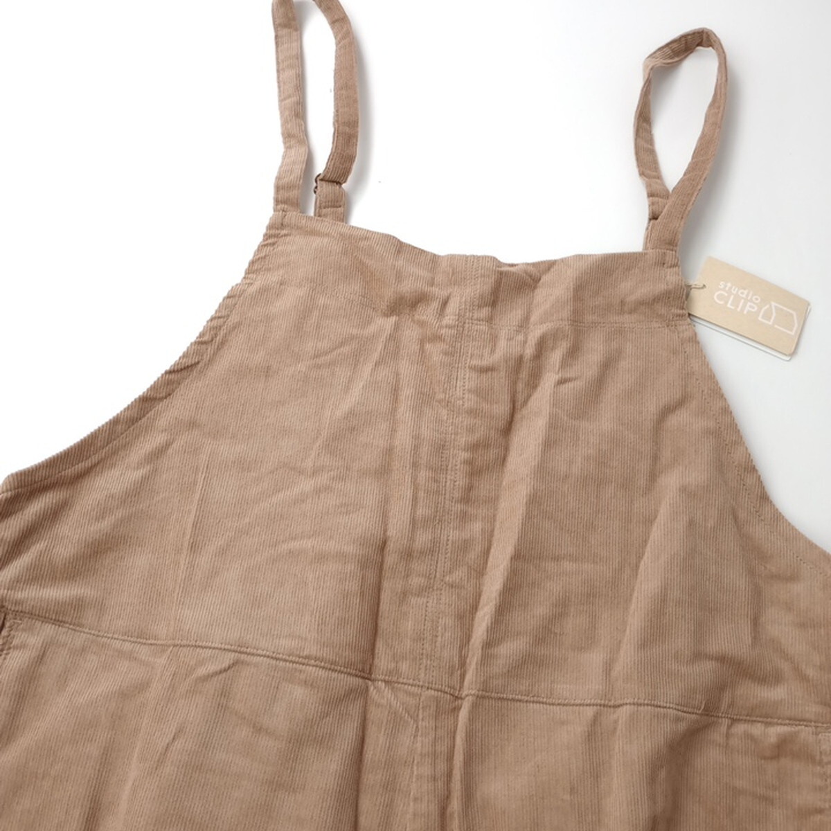 新品 studio CLIP スタディオクリップ「”わたしの楽ちん”を着よう♪」コーデュロイ サロペット オールインワン L ブラウン(28M+8129)