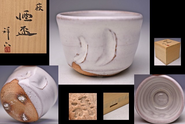 サイズは 72mmx70mmx高さ51mm です。 祥六の 箱書きの ある 萩のぐい呑です。 宅配便60サイズにて発送します。 他にも多数出品してます。同梱対応いたします。