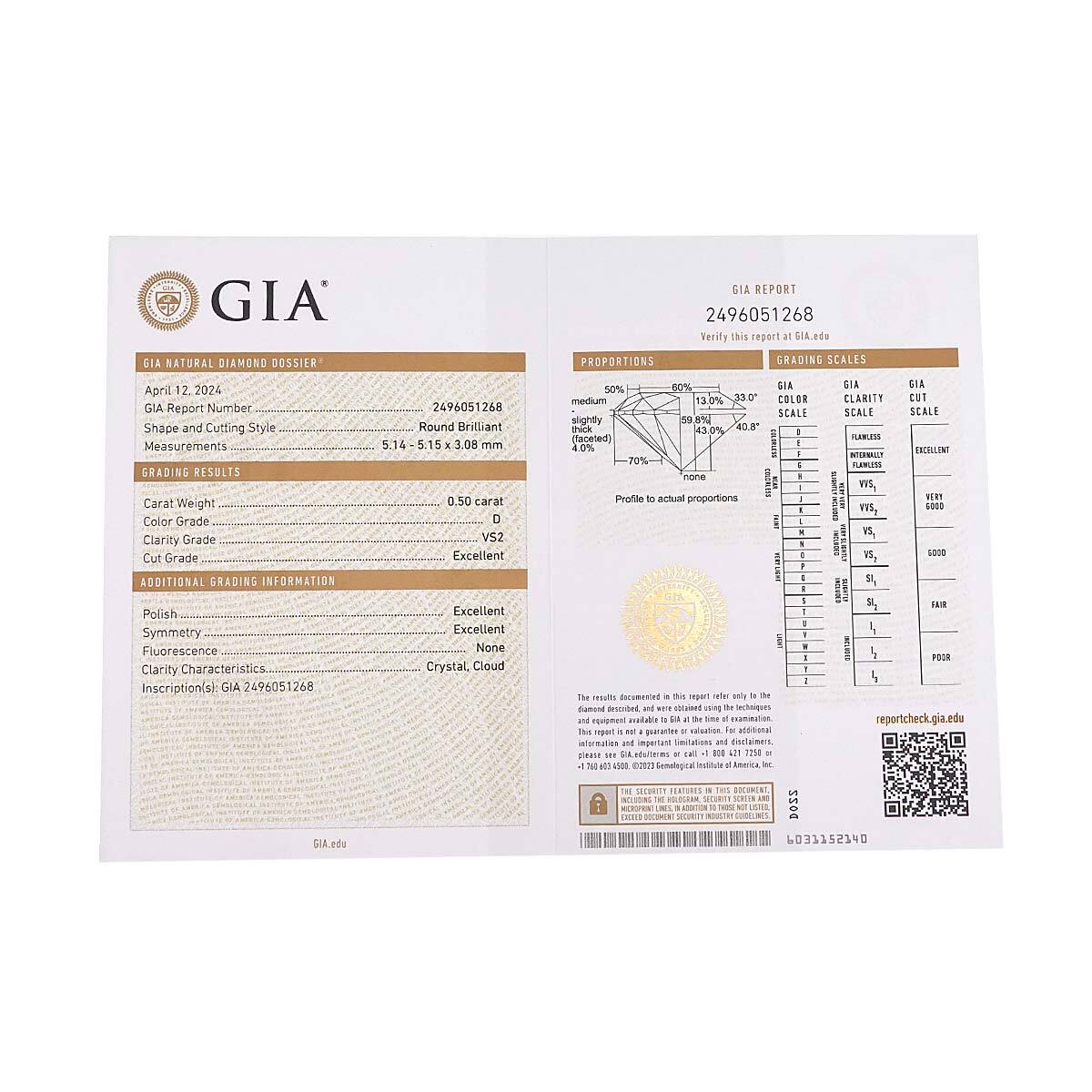 | 材質/刻印 | 18金ホワイトゴールド ダイヤ 0.50ct 、D/VS2/(3EX) チェーン(刻印750、0.50、D VS2) |