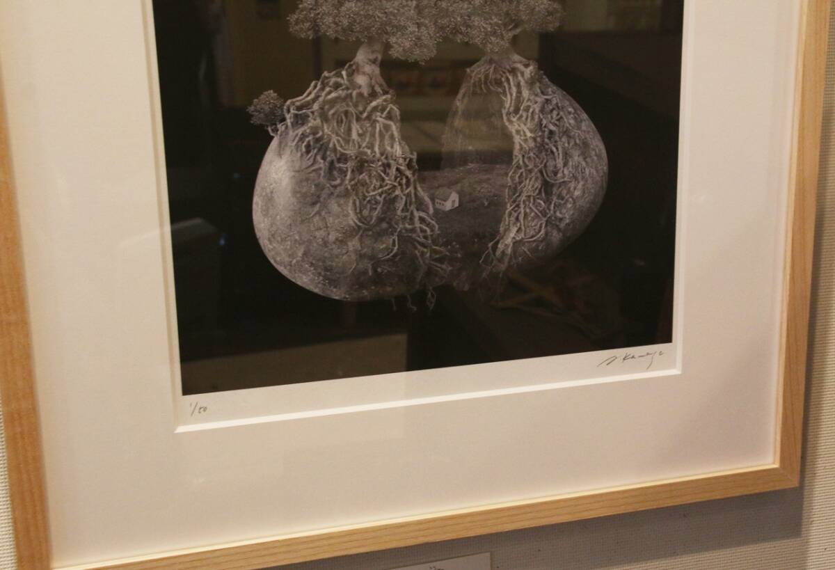 やわらな風合いの和紙に、精巧に作られたフォトコラージュの版画です。