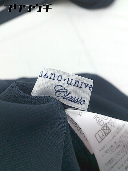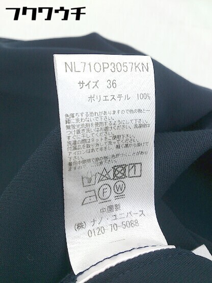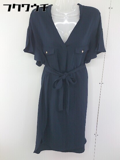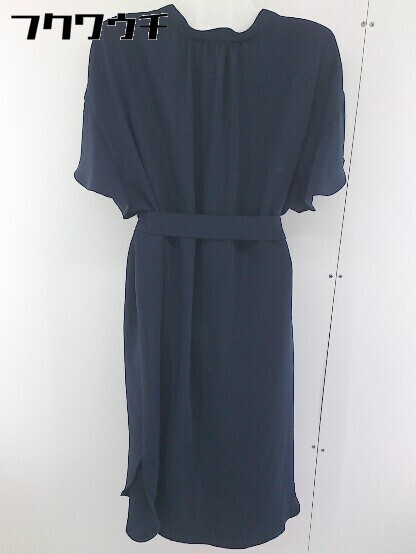 ◇ ◎ nano universe ナノユニバース ウエストリボン付き 半袖 膝下丈 ワンピース サイズ36 ネイビー レディース