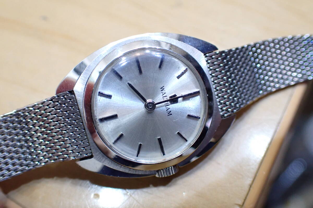 時計店在庫 ウォルサム シルバー文字盤 手巻き アンティーク腕時計.です。 裏蓋に保護シール付きの長期保管品です。 プラ風防に小傷あります。 ケースやベルトも小傷程度で、まだ綺麗です。 他写真でご確認ください。 ゼンマイを巻いて数分程度の確認ですがカチカチと動いています。 オーバーホール前提でジャンクでお願いします。 ケース径:約22mm ・他にいろいろ出品しています。 同封可能です。 !オークション終了後、24時間以内に「お取引を始める」ボタンをクリックして、必ず取引をスタートして下さい。 取引のスタートが無ければ、削除させていただきます。 必ず厳守してください! 「新規ID」「直近で悪い評価が多い方」のトラブル(イタズラなど)が非常に多いです。 当方が、お取引に支障があると判断したID(特に新規ID)は削除します。 ●ジャンク品と記載の物の商品到着時の動作保証はありません。 ●付属品等は、写真に写っているものですべてです。 | ||||