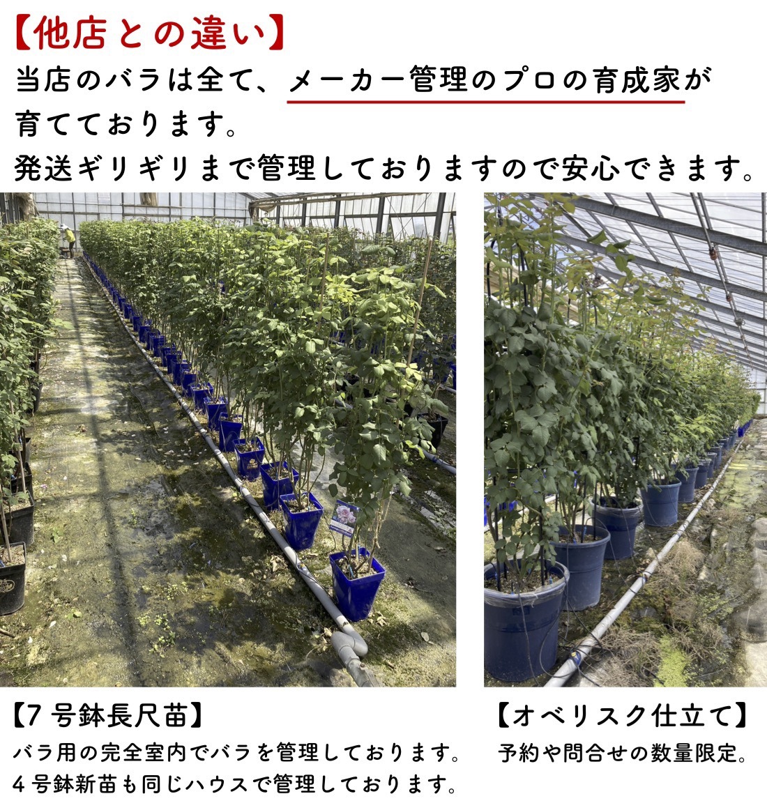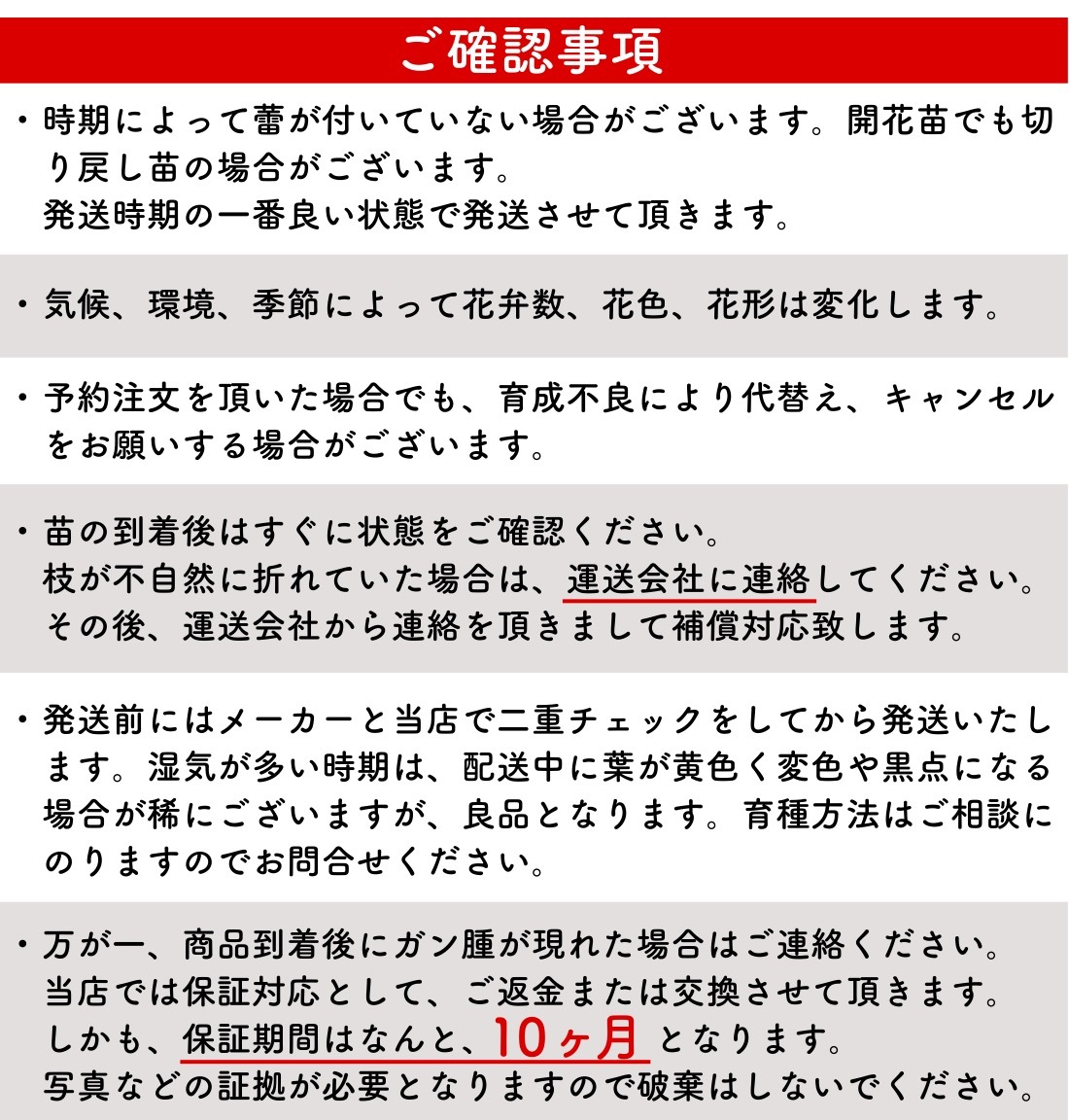 また、バラ苗の生育状況などにより商品を確保できない場合もございます。