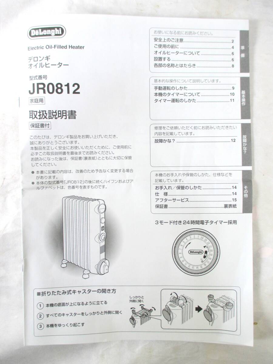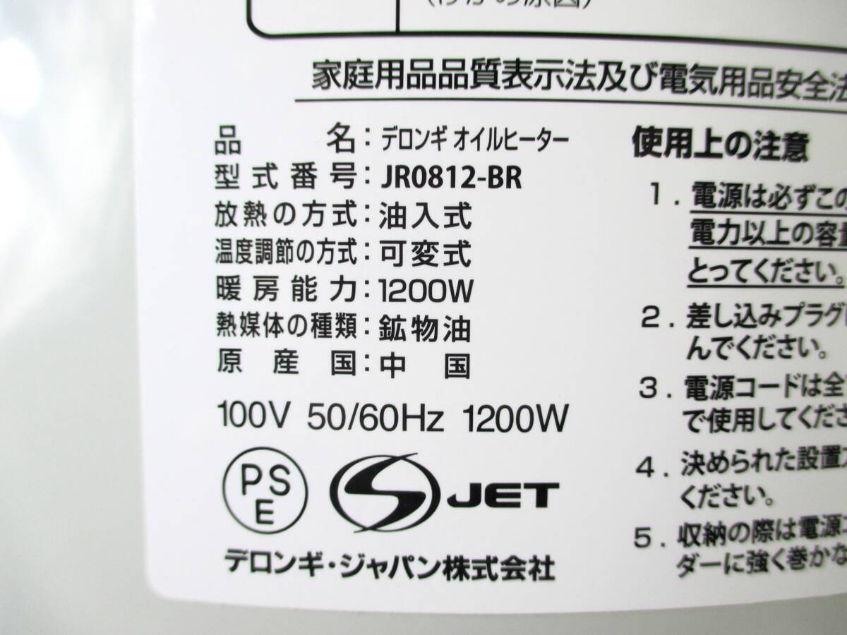 DeLonghi デロンギ JR0812-BR オイルヒーター 8畳~10畳 1200W 専用トップラック付 暖房 ヒーター 安全 説明書付 動作OKの出品です。