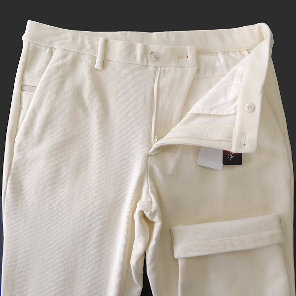 オッジインターナショナル正規品 定価29,700円 新品 未使用 紙タグあり 52サイズ(XLサイズ相当) ウエスト94cm ※商品に記載されたサイズ・寸法です※ ウエスト実寸94cm(内回り1周) 股上29cm 股下86cm 裾幅21cm 腿幅31cm(股下10cm部分) ※伸縮性が高い素材のため多少誤差が生じることがあります※ 本体:ナイロン61% ポリエステル30% ポリウレタン9% 切替:ポリウレタン100% 一部分:合成皮革 オフホワイト |