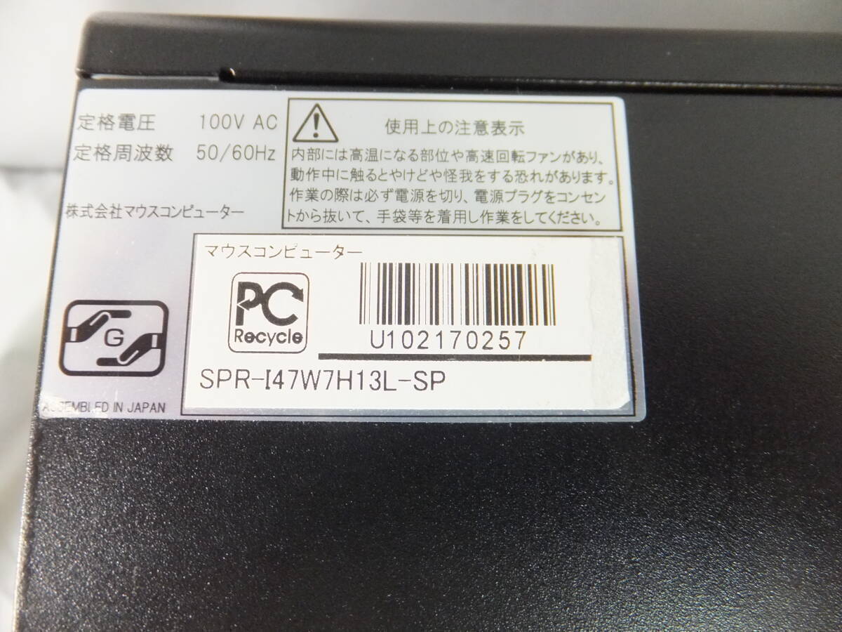動作確認事項等 ※近日説明書き読まず自己判断で入札トラブルが多く発生有り新規の方及び不明点の有る方は、注意書きをもう一度確認&必ず質問後入札をお願い致します。】  委託保管品出品 ・ 旧式のマウスコンピューターの、蒸気洗浄後の再組立て、OS(Win11Pro認証無し)仮インストール、動作確認済み品です、ブルーレイ&DVDRは、PC制作音楽CDR読み込み音出しヘッドホンで、確認済み(書き込みはメディア無しで省略)、・ カードリーダーは、マイクロSDのみ確認済み ・ Win11は認証すれば、これからも使用可能です、落札者様でお願い申し上げます、以上、配送用梱包までの2日間程度の動作試験ですが、普段使い問題ありませんでした。(動作確認済ですので、ジャンク扱いでは有りませんが、全ての動作を保証するものでは有りません)宜しくお願い申し上げます。 追記 ・ 電源は700W 80 PLUS ・(GOLD) ・全体的に奇麗ですが、全面パネル下部にゴールド塗装の剥がれが有ります、又写真画像の白ベゼルのDVDをブルーレイに変更です、ご了承下さい