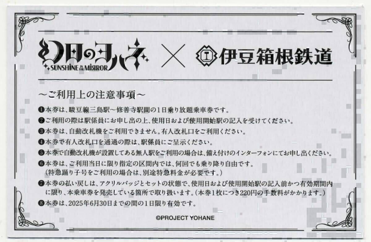 【伊豆箱根鉄道】ラブライブサンシャイン!コラボ 駿豆線1日乗車券 旅助け/2024年 小原鞠莉バースデーアクリルバッジ付き
