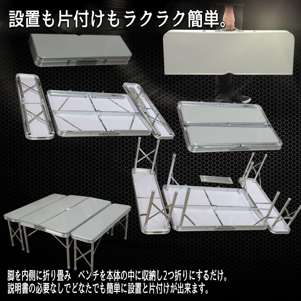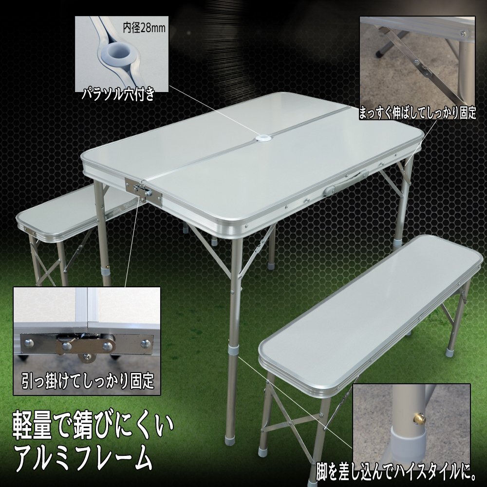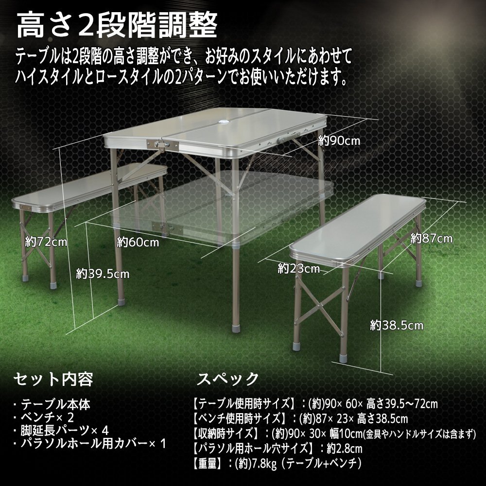 軽量アルミ製+取っ手付きで気軽に持ちだして、 組み立てはとっても簡単! テーブルは2段階の高さ調節ができ、 キャンプ、バーベキュー、お花見などにとても便利! 【仕様】 【内容】 |