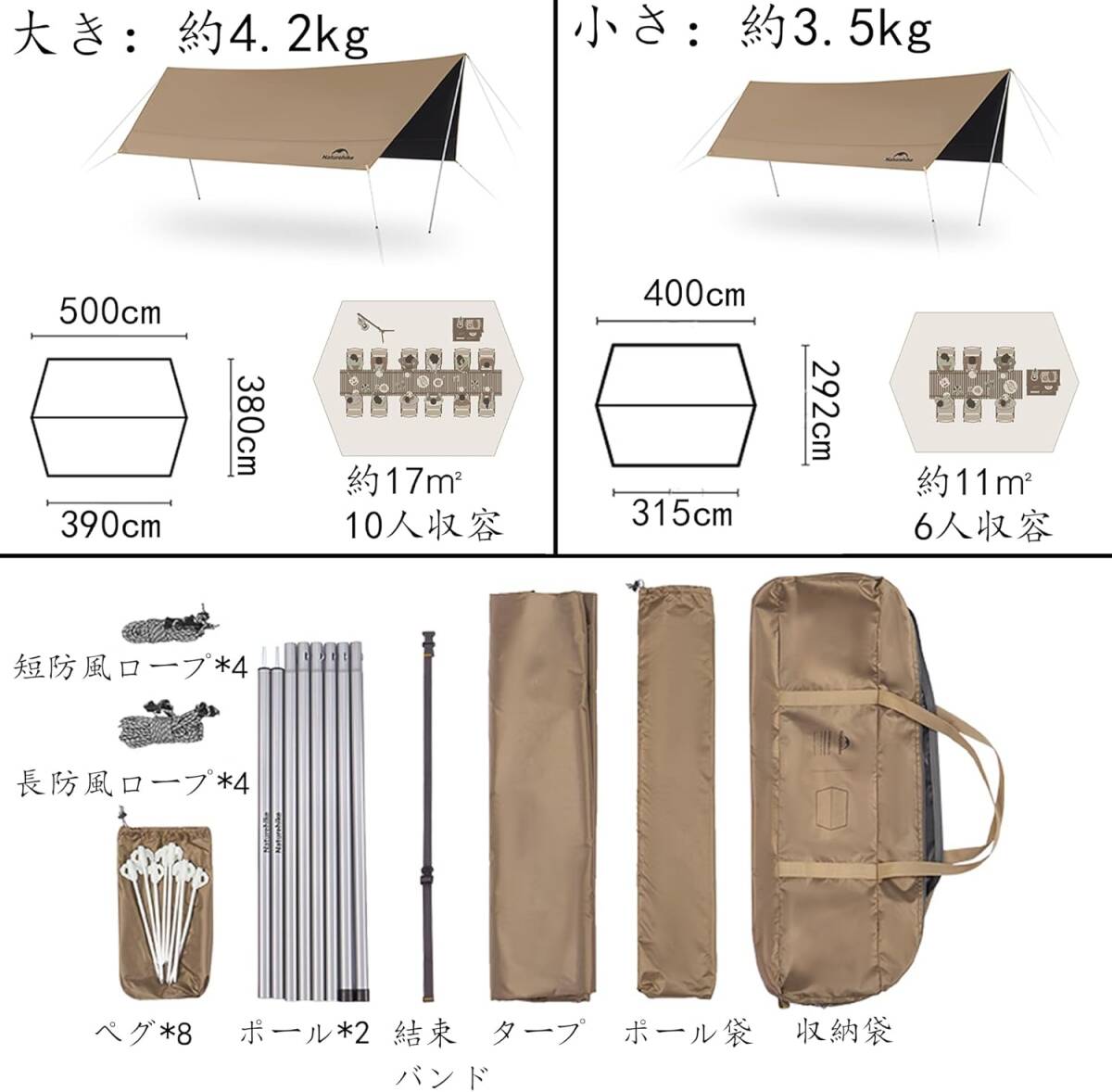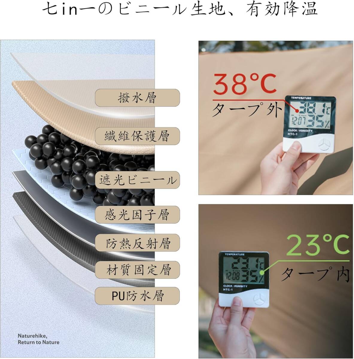 5×3.8m 大きいサイズ 自宅でも使える Naturehike 避暑タープ 防水 日除け UVカット 遮熱 遮光 焚火可 防風 多用途