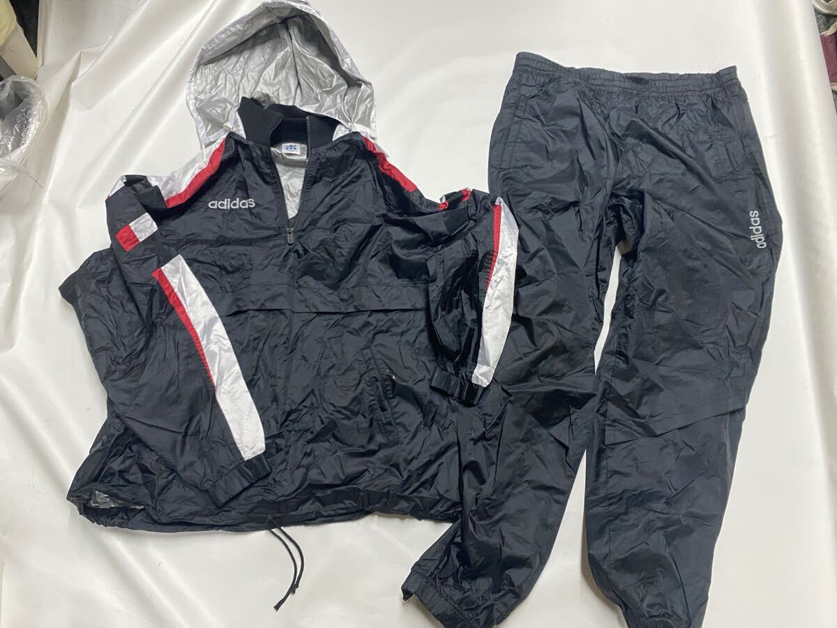 美品 アディダス ウインドブレーカー ピステ 黒 上下 セットアップ デサント製 シャカシャカ M-Lサイズ