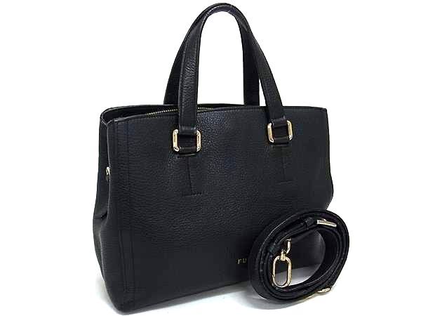 1円 FURLA フルラ レザー 2WAY クロスボディ ショルダーバッグ ハンドバッグ トート 肩掛け 斜め掛け レディース ブラック系 FR6616