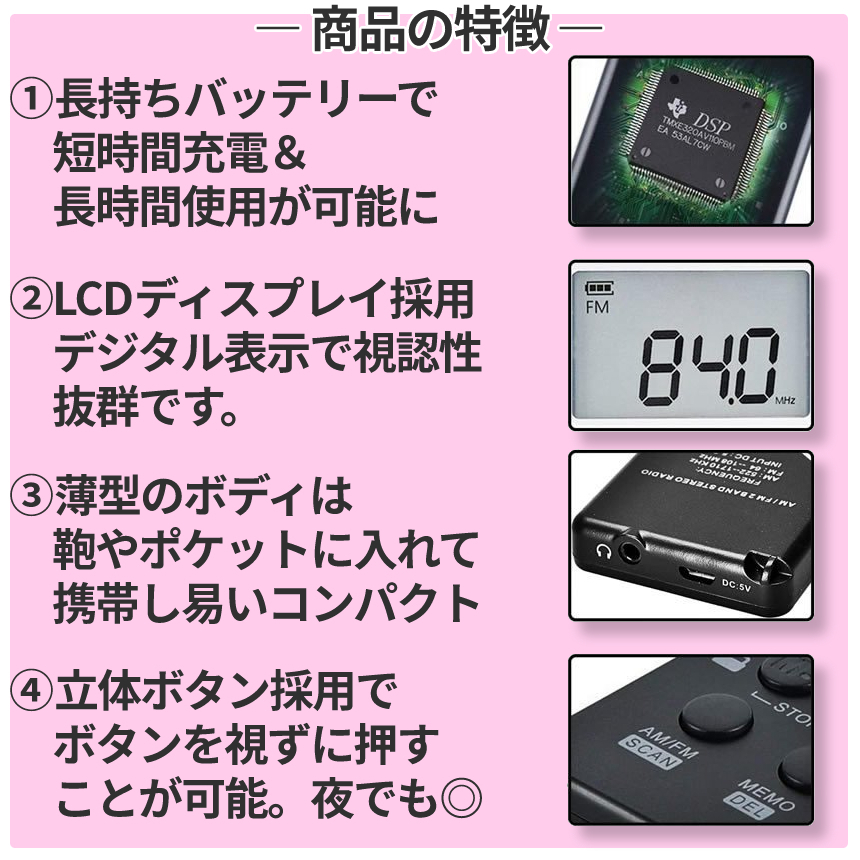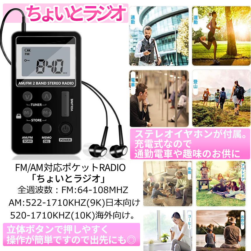 | 送料無料!!! 送料及び下記のご案内をご確認の上、ご入札お願い致します。 離島地域を除く九州、四国、本州まで送料無料。 ※北海道は+1000円、離島地域及び沖縄県は+3000円にて承ります。(発送前に加算) ※画像内にカラー及びサイズ等の選択が可能と記載がある場合がございますが、 お届けする物はタイトルまたは商品説明文に記載の物です。 ★※注文後のカラー変更や異なるカラー・サイズ指定等は一切承っておりません。 ※★※仕様(ロゴデザイン/ロゴ有無等も含む)は予告なく変更する場合があります。 ※多少の汚れや小傷がある場合がございますがご了承ください。 梱包は簡易包装ですので、箱の角落ち等はご了承願います。 【小型通勤ラジオ】 \手のひらサイズの便利な充電型ポケットラジオ/ 立体ボタン採用で押しやすい♪ 余計な機能がないシンプルデザイン♪ バッグの中に入れたままでのブラインド操作も◎ 大きいLCD液晶ディスプレーで見やすい表示◎ DSP技術を採用されたミニデジタルラジオは 強大なデータ処理と安定性、受信感度が高い特徴があります。 FM&AM料対応ラジオ 日本国内だけでなく、国外旅行にも便利なミニラジオ。 USBケーブル充電だから電池や電源不要! 長期的に使用できPCやモバイルバッテリーで充電出来ます♪ 2-3h充電後10-12h連続使用 [安心の日本語操作説明書付き] ============== 【商品仕様】 パッケージ内容:本体1つ,イヤホン1つ,携帯ストラップ1つ [周波数] FM:64-108MHZ AM:522-1710KHZ(9K)日本向け 520-1710KHZ(10K)海外向け ※イヤホンの形状は入荷時期により変化します ※サイズは実寸ですが若干前後する場合がございます。 ※モニターにより色合いが若干前後する場合がございます。 ※輸入品ですので多少の臭いやスレ傷、汚れはご了承ください。 =========== ![]() ![]() ![]() ![]() ![]() ![]() ![]() |