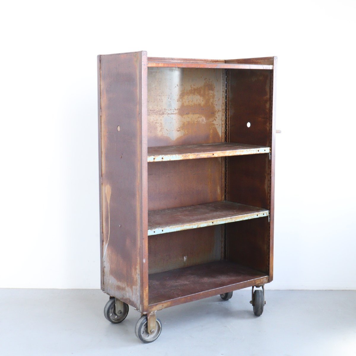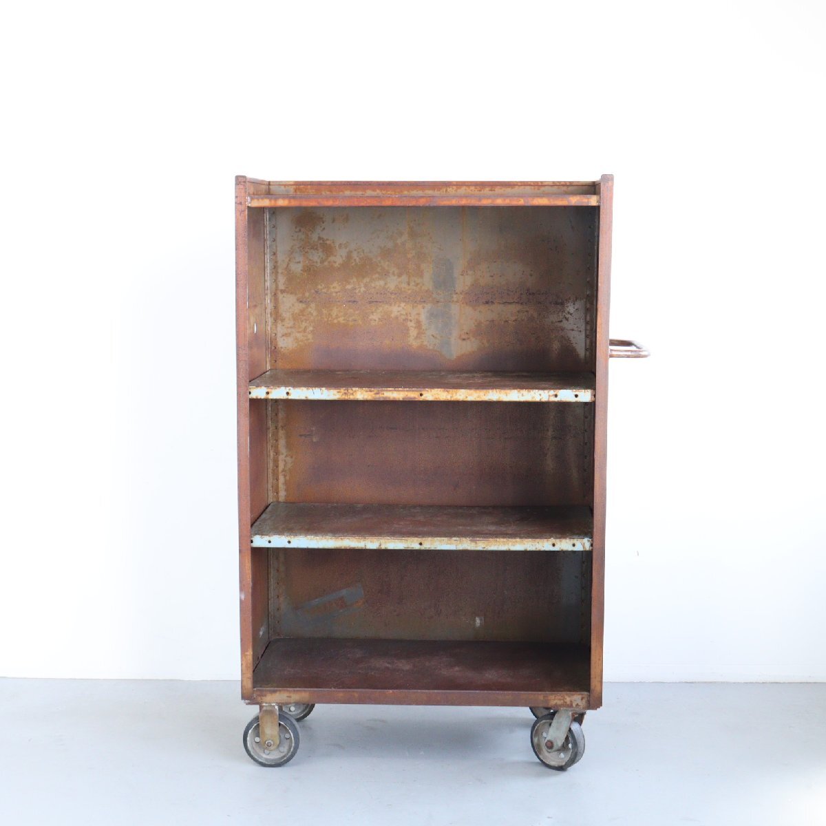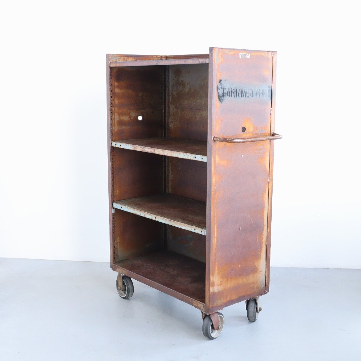| 商品説明 explanation | 推定1940年代から1950年代の「M.E.CANFIELD.CO」製シェルフワゴンです。 メタル製の頑丈な造りで、上から2段目と3段目が可動式で使い勝手も良く、インダストリアルな雰囲気で今のモノには出せない存在感があります。 ガレージや店舗ディスプレイなどにいかがでしょうか。 |