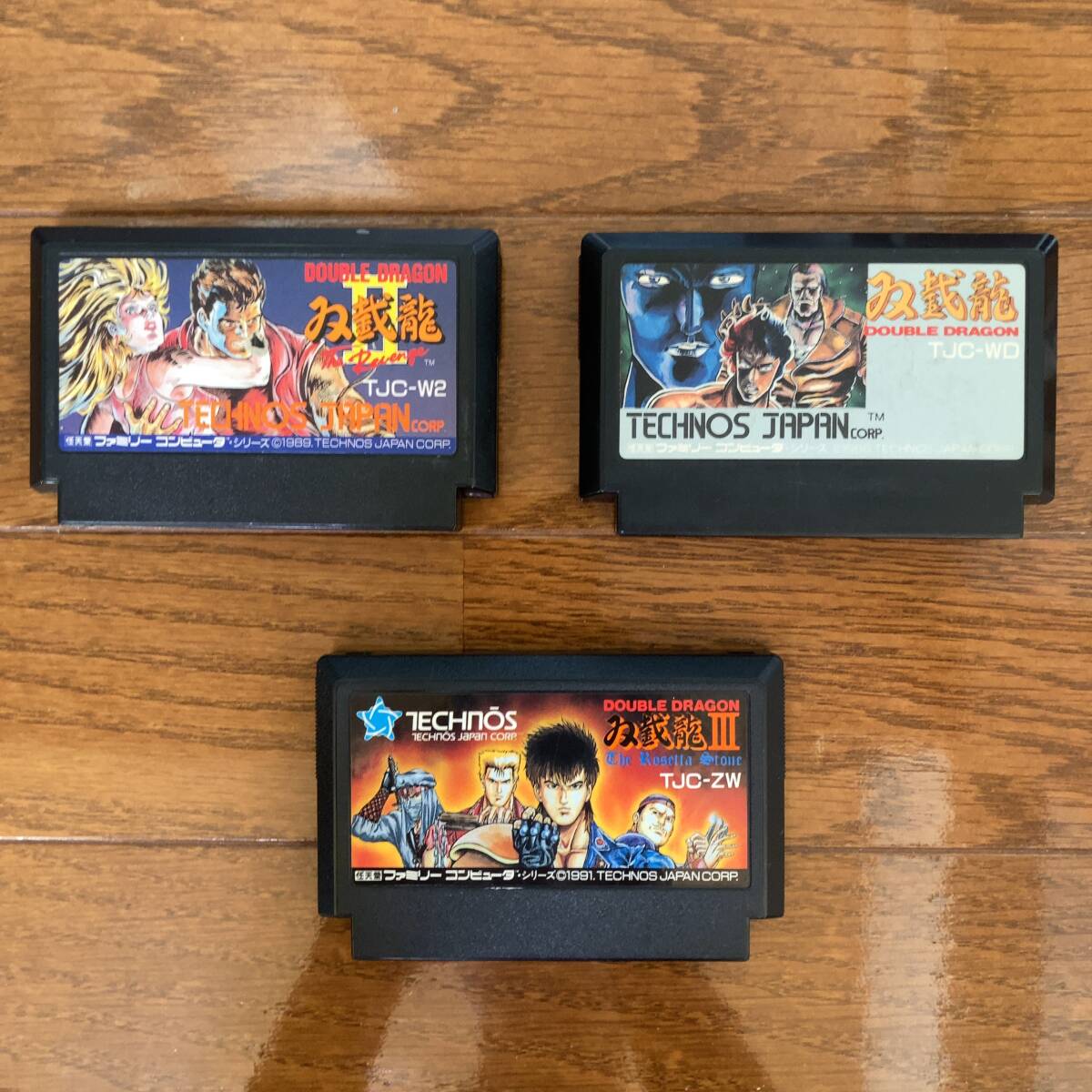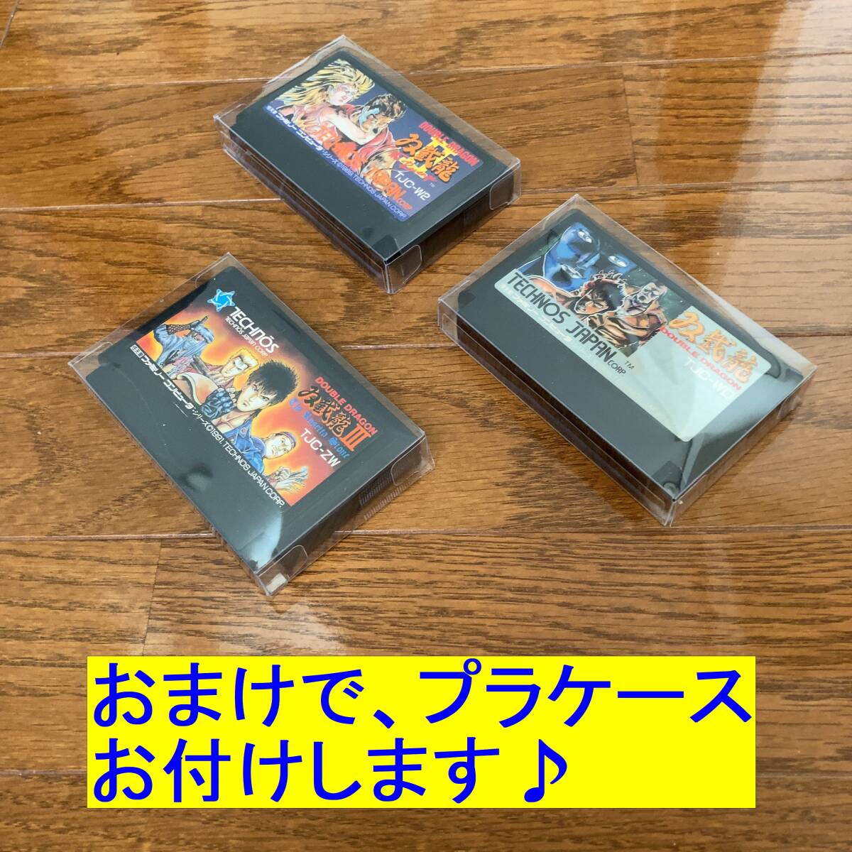 | ★商品説明★ | 数多くの商品の中、ご覧いただきましてありがとうございます♪ ファミコンカセットの 「ダブルドラゴン 双截龍 DOUBLE DRAGON」 「ダブルドラゴンⅡ 双截龍Ⅱ DOUBLE DRAGON Ⅱ」 「ダブルドラゴンⅢ 双截龍Ⅲ DOUBLE DRAGON Ⅲ」 3本セットです。 NEWファミコンにて動作確認しております。 カセットのみです。箱と取扱説明書はありません。 写真のものが全てです。 (※NEWファミコン本体と液晶テレビは付属しません) カセットの状態については写真からご確認ください。 おまけとして、コレクションを保存する際に使用していた オリジナルのプラケースをお付けします。 (※おまけのプラケースには、私が管理の為、テプラで番号を記入したシールを貼ったものがございます。あくまでサービス品ですのでご了承下さい) |