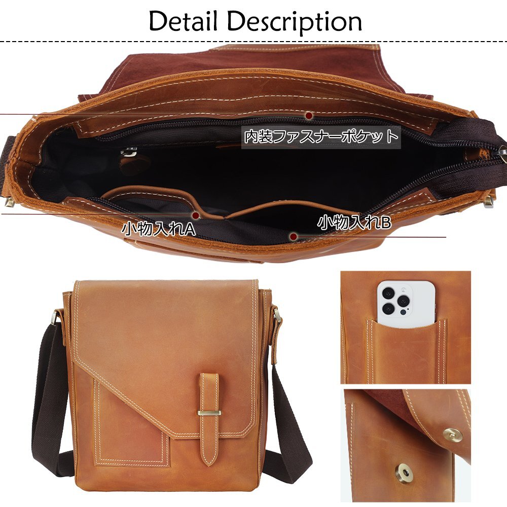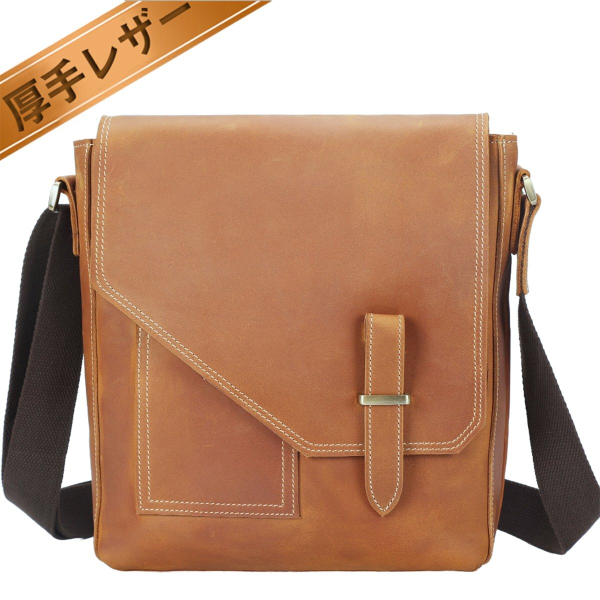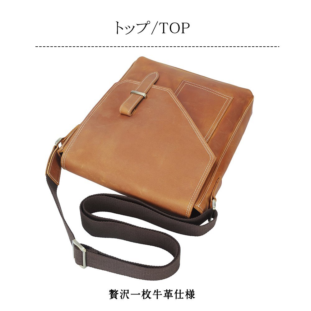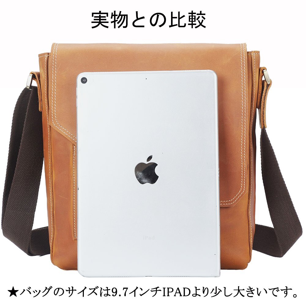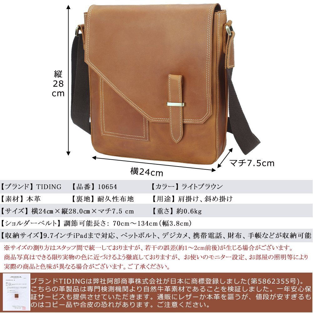 TIDING アンティーク 本革 メンズ メッセンジャーバッグ 斜め掛けバッグ 厚手牛革 オイルレザー 経年変化 iPad対応 自転車 ブラウン 潮牛