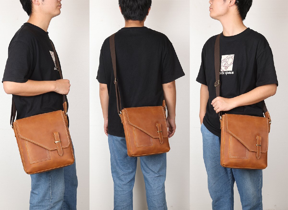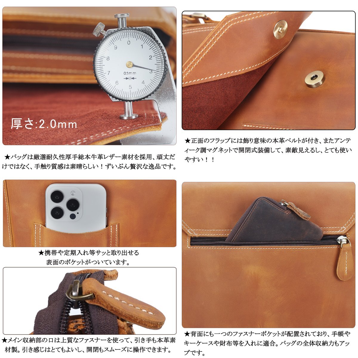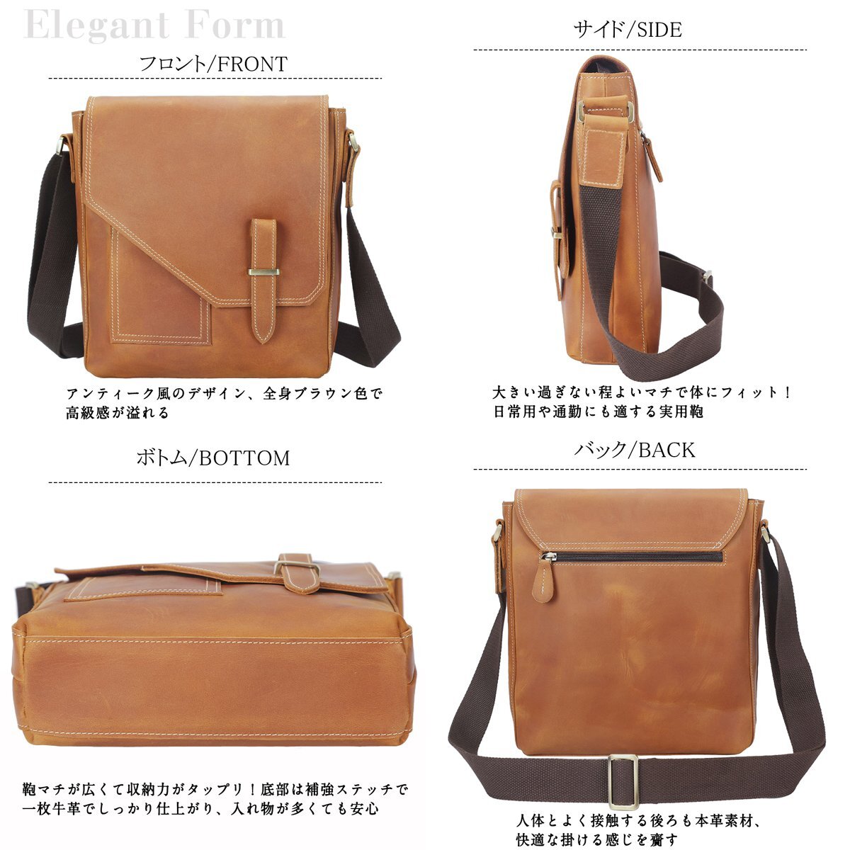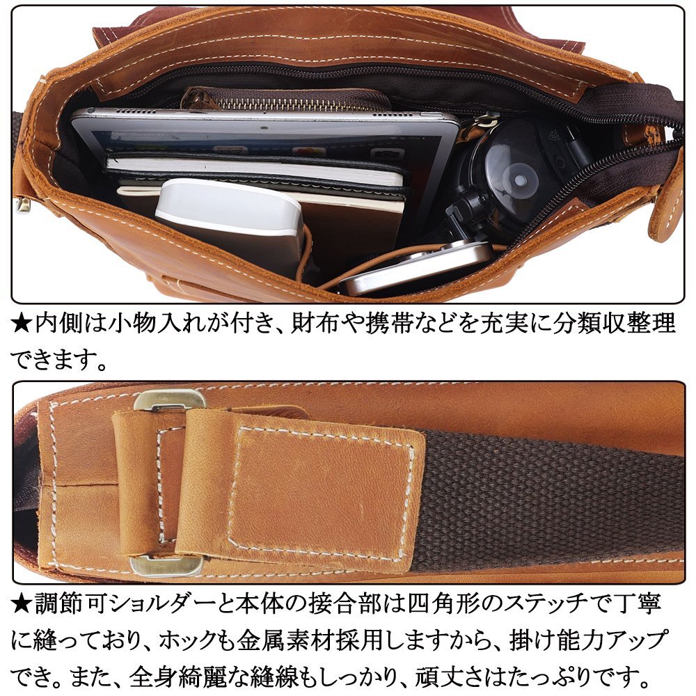 TIDING アンティーク 本革 メンズ メッセンジャーバッグ 斜め掛けバッグ 厚手牛革 オイルレザー 経年変化 iPad対応 自転車 ブラウン 潮牛