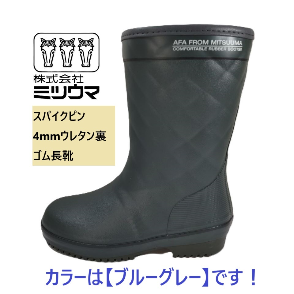 新品即決 送料無料 24.0cm ミツウマ 防寒 エーファ 4110 ブルーグレー レディース スパイク 長靴 完全防水 防滑 あたたかい スノーブーツ
