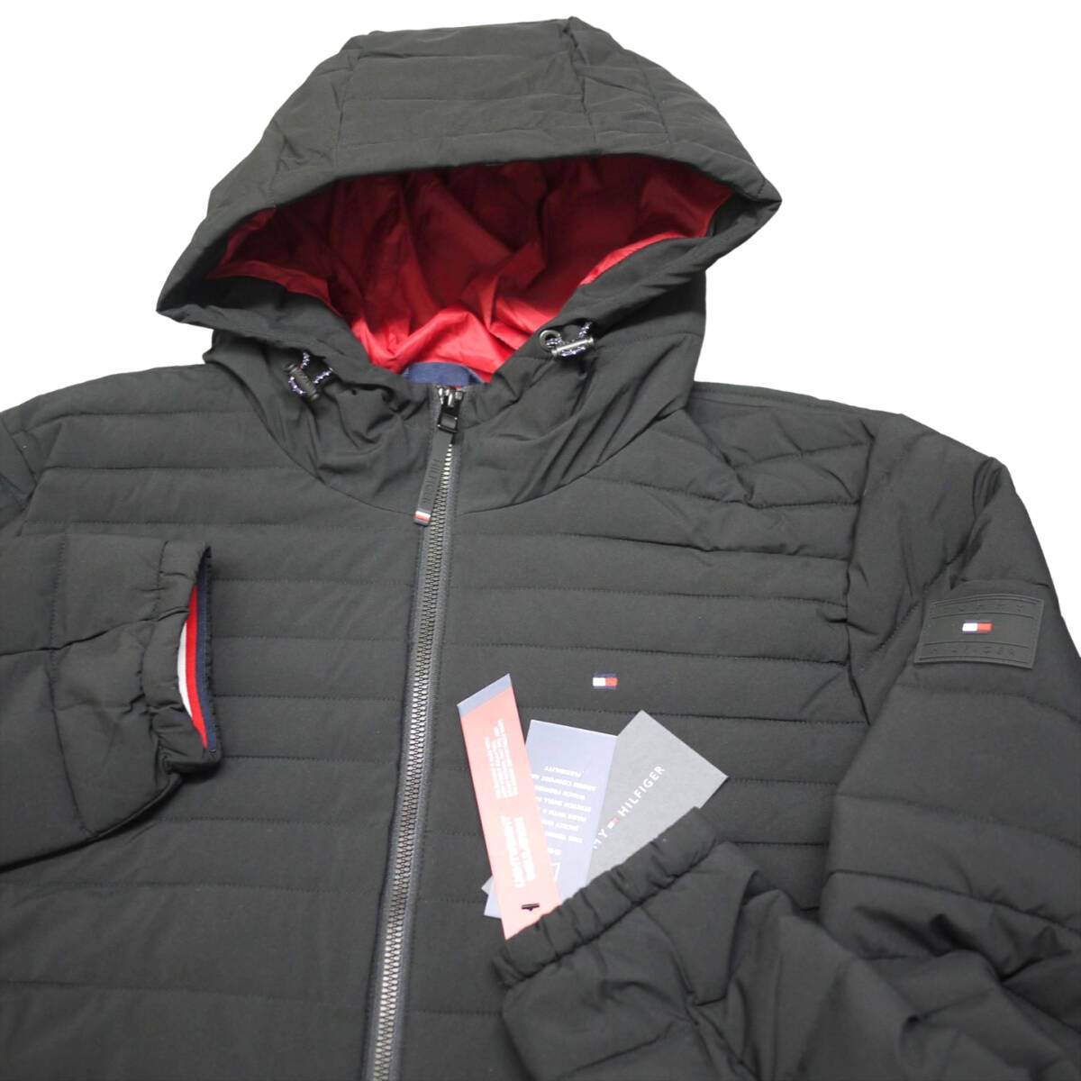 新品 トミーヒルフィガー THFLEX ストレッチ 軽量 中綿ダウン調 キルティング ジャケット パーカー XXL 黒 TOMMY HILFIGER /25ns070XXL