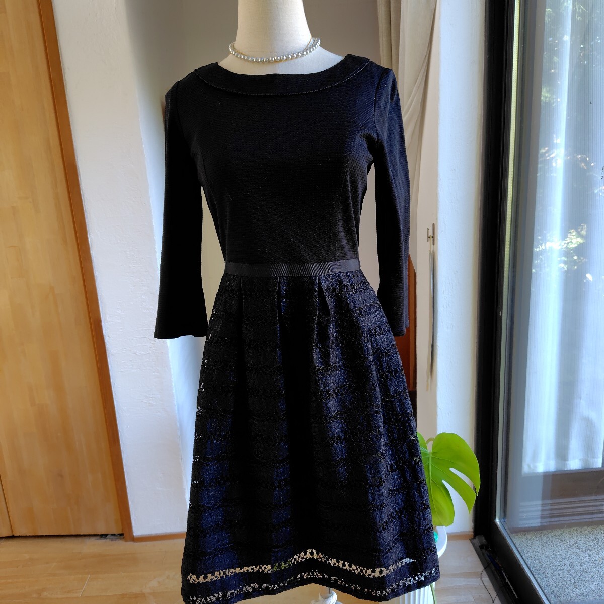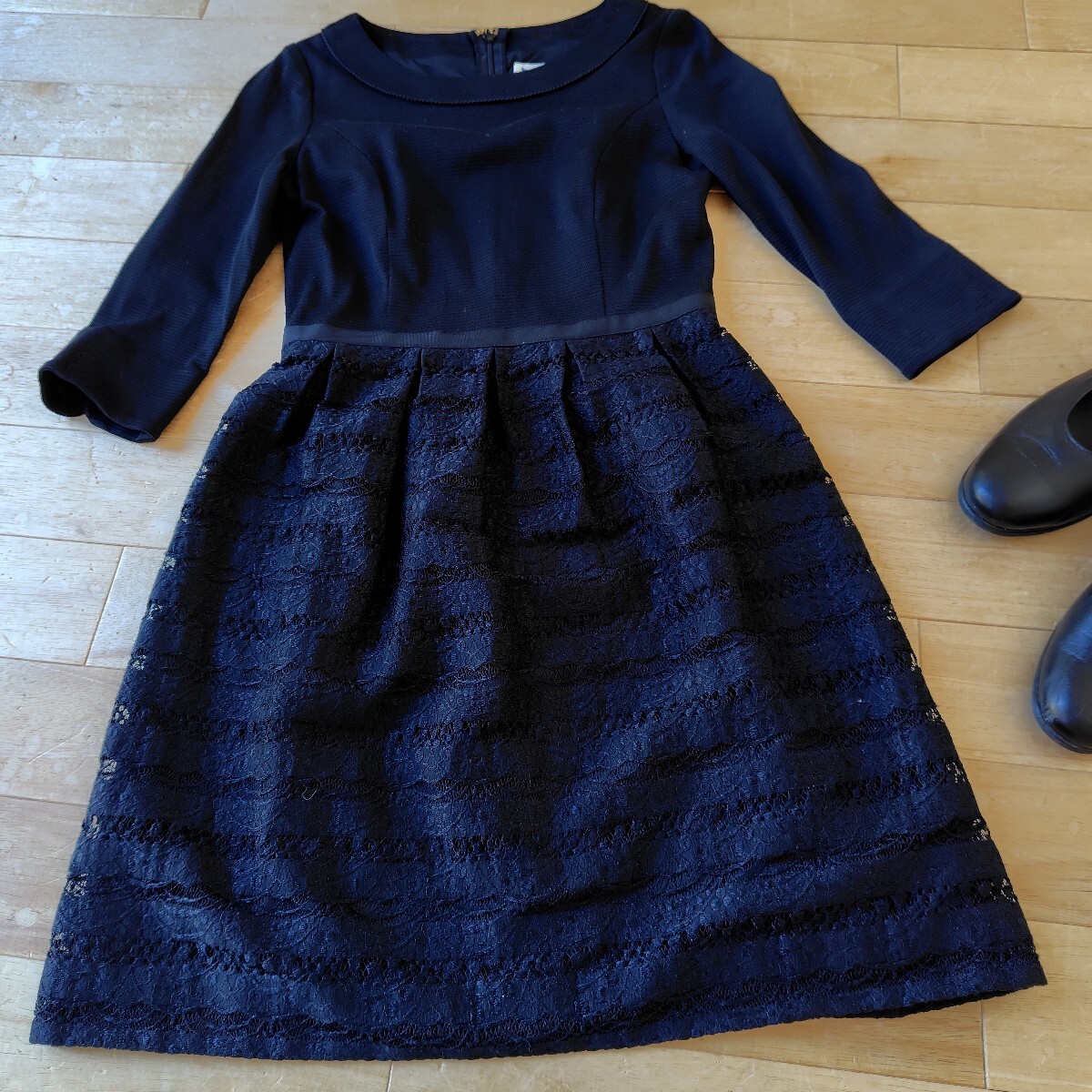 組曲のレース 合わせのエレガントなワンピースです。綺麗な シルエットです。 様々なシーンで お使い頂けるかと思います。