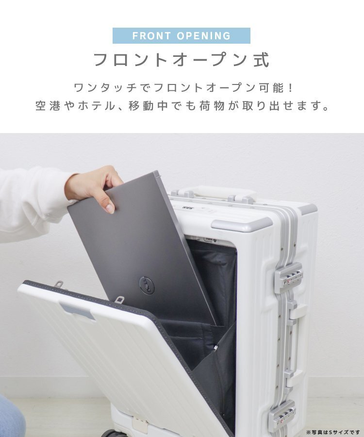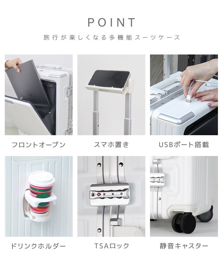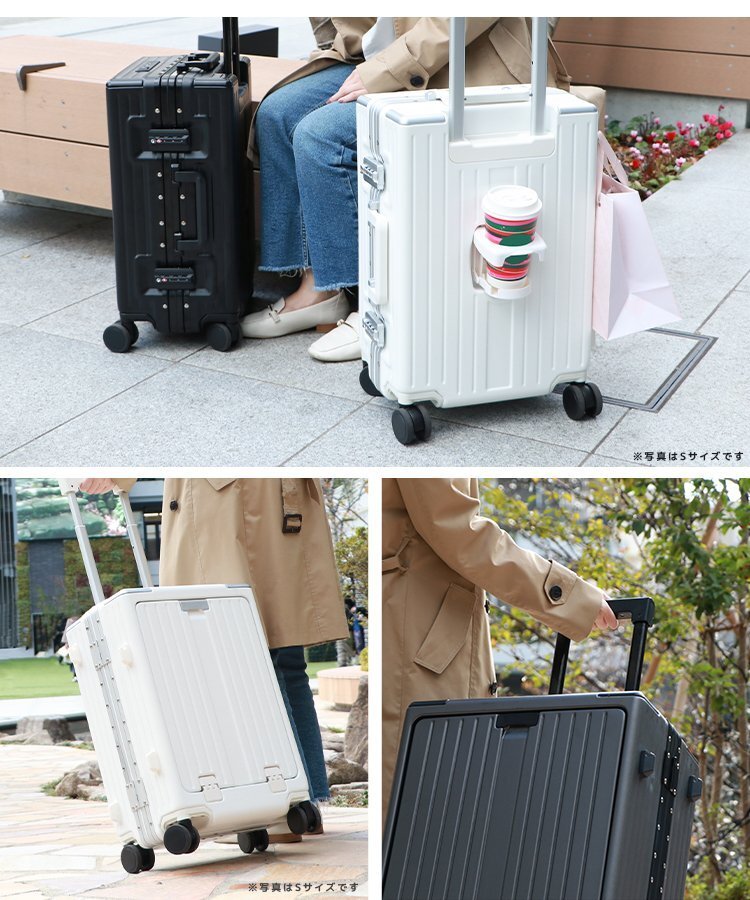 | \今話題の!多機能スーツケース/ フロントオープン式で、たっぷり収納できる多機能スーツケースです。 旅行を快適に!「軽さ・頑丈さ・使いやすさ」を兼ね備えた優れものです! シンプルで使いやすい3色展開。 ■フロントオープン式! ワンタッチでフロントオープン可能! ノートPCやタブレット、A4の書類がすっぽり入ります。 中のポケットはクッション付きなので電子機器を入れても安心です。 移動中でも荷物がさっと取り出せて便利♪ ■便利な機能満載! ハンドル部分には、スマホホルダーを搭載! 待ち時間などに動画を見るのに便利です。 USBポート搭載で、移動中もスマホの充電が可能です。 ドリンクホルダー&荷物掛けフック付き! 水筒やコーヒーカップ、傘などを置けてとっても便利♪ ■高耐久&高品質 軽さと耐久性に優れたハードタイプの高品質ボディを実現しています。 丈夫なのに軽量!女性でもラクラク持ち運べます♪ 360度回転するキャスターは、静音仕様。 スムーズで安定した走行が可能です。 便利なダイヤル式TSAロック 大容量の収納スペースは、ポケット付きの仕切りで、荷物をきちんと整理整頓できます。 ■商品コード:PCBF24WH ■商品仕様 カラー:ホワイト サイズ(約):40×27×63cm 重量(約):6.6kg 容量(約):60L ■注意事項 ・商品は、モニターによって色合いが異なって見える場合があります。 ・仕様・デザインは改良のため予告なく変更することがあります。 ■保障期間 7日間 ※商品到着後7日以内の初期不良・破損のみご対応させていただきます。 【新品未使用品です】 |