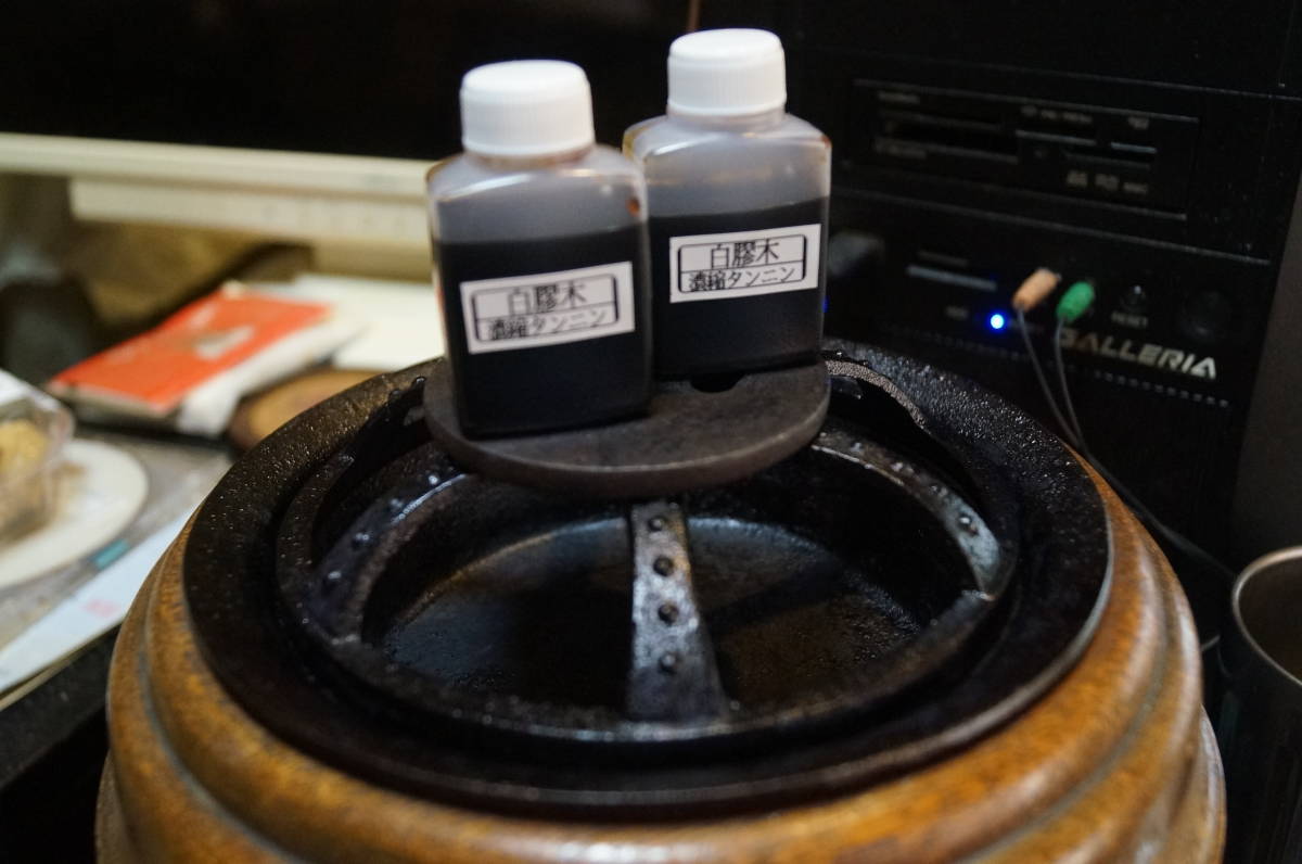 古美術鉄器、色揚げ防錆剤 赤サビを黒錆(タンニン鉄)へ 天然「白膠木濃縮タンニン酸」刀剣小道具(鍔・鉄製小道具)鍔・縁頭・鉄瓶・に