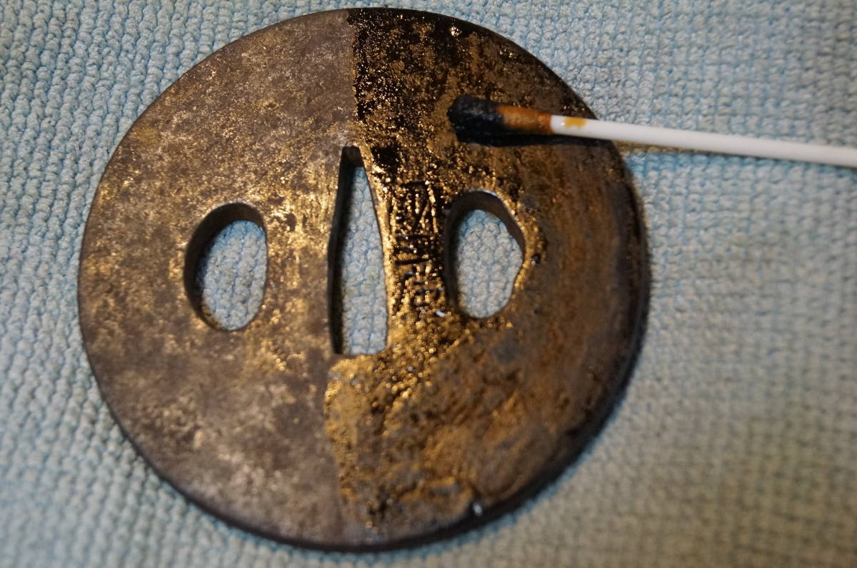 天然「白膠木濃縮タンニン酸」刀剣小道具(鍔・鉄製小道具)鍔・縁頭・鉄瓶・古美術鉄器、色揚げ防錆剤 赤サビを黒錆(タンニン鉄)に 如何ですか。