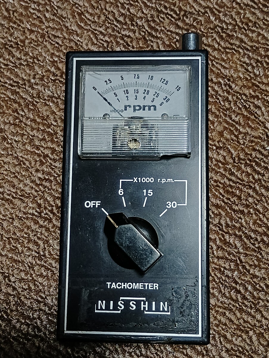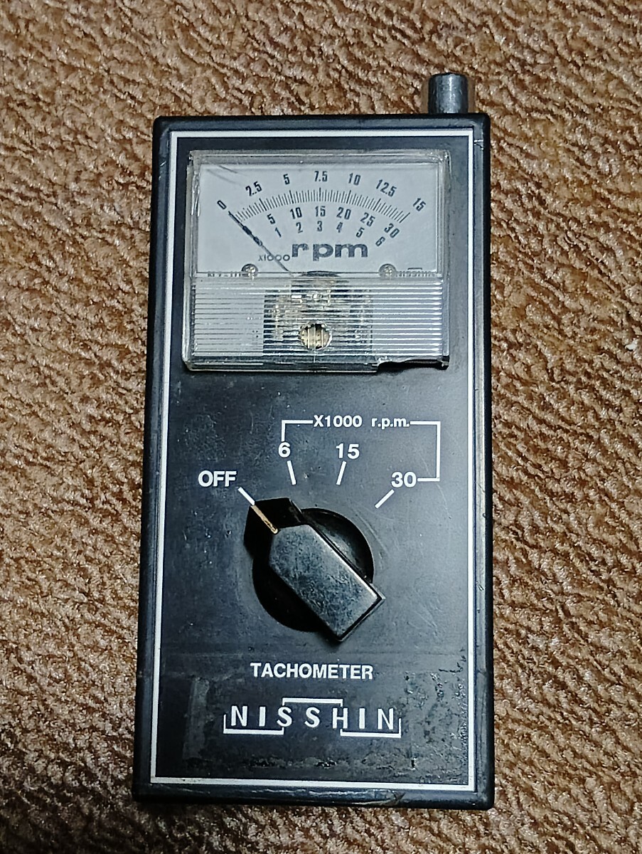 回転計です。古いけど作動確認しました。ケースに割れ欠け等が有ります。