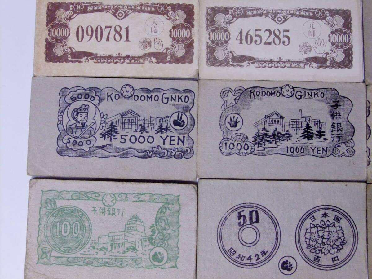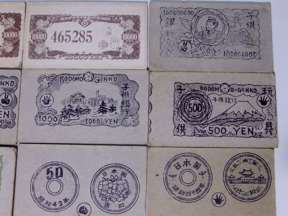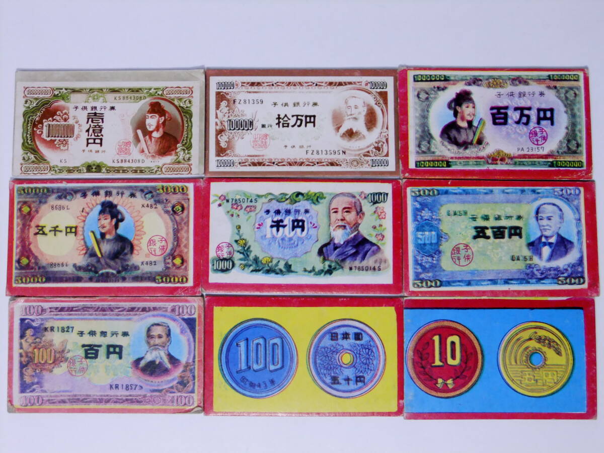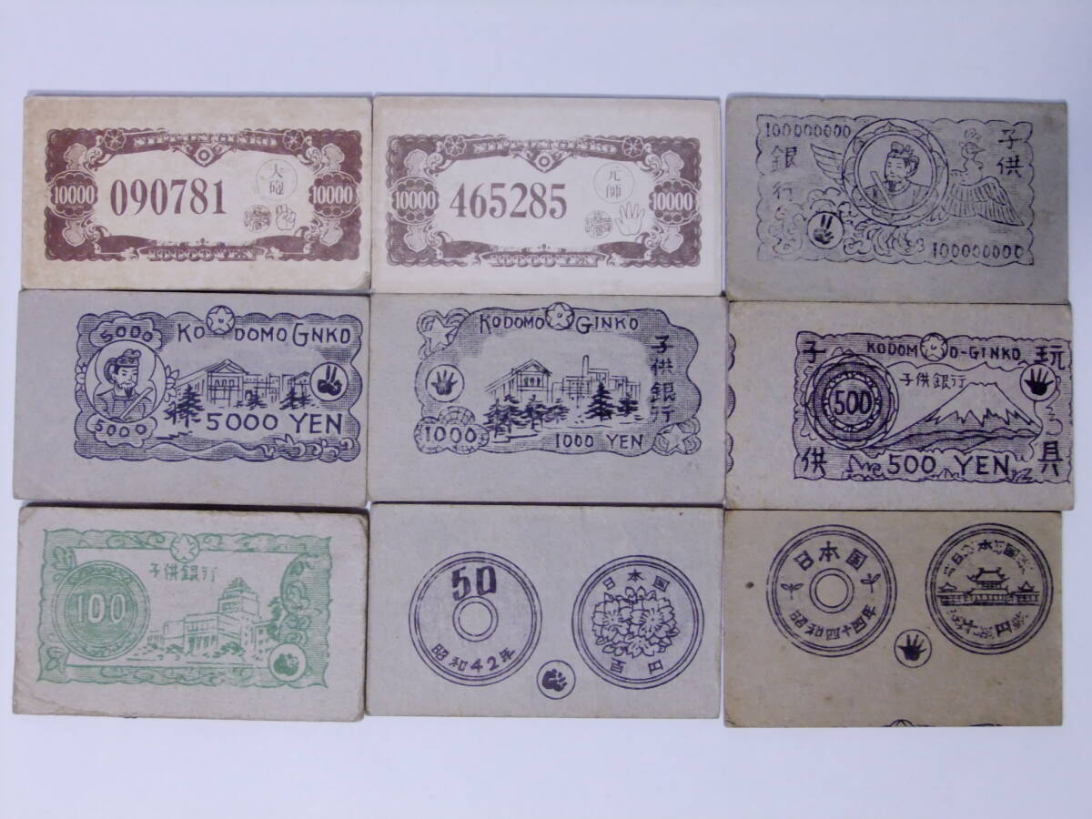 昭和20~30年代頃 お金 面子 9枚 お札 旧札 壱億円 百万円 聖徳太子 めんこ メンコ (検)駄菓子屋くじ引き 当時物