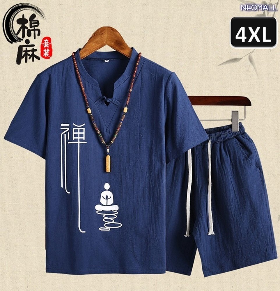 夏にピッタリ 【409】ルームウェア セットアップ ネイビー 4XLサイズ 半袖 パンツ メンズ 部屋着 メンズ オフ 清涼