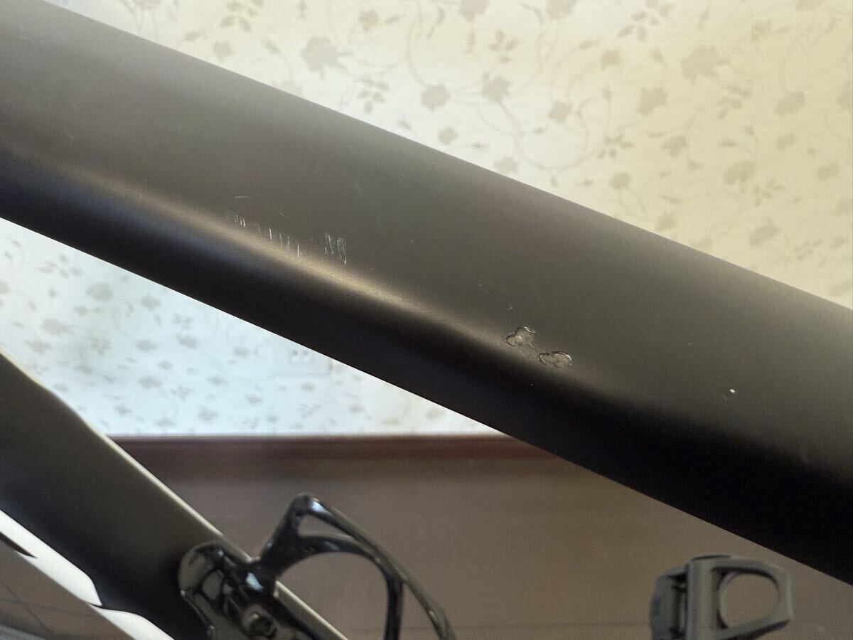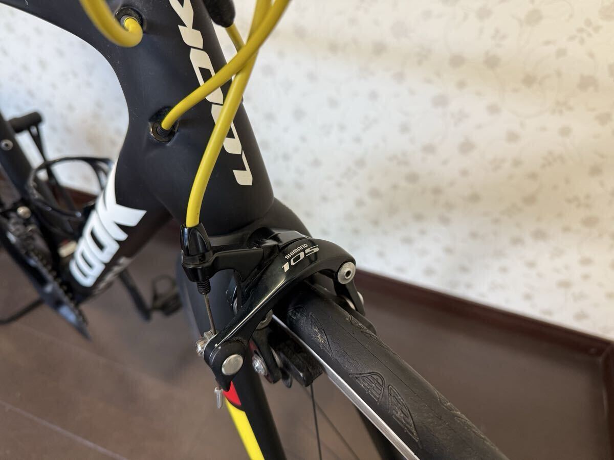 目立つ傷は画像に載せていますが、それ以外にもちょっとした小傷は多少あります。タイヤはひび割れで使えません。ハンドルのバーテープもボロボロになっています。