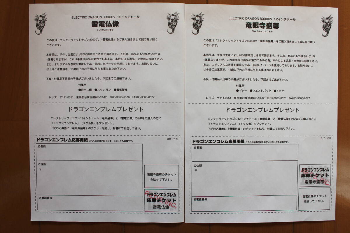 2000体限定 1/6フィギュア エレクトリックドラゴン80000V 竜眼寺盛尊(浅野忠信) 雷電仏蔵(永瀬正敏) 2体セット ELECTRIC DRAGON出品します。