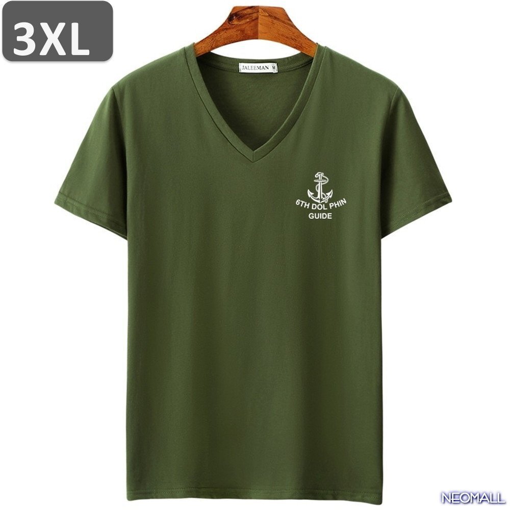 夏にピッタリ ☆ Vネック 半袖 Tシャツ【454】 グリーン 3XLサイズ トップス シャツ シンプル イラスト デザイン 春夏