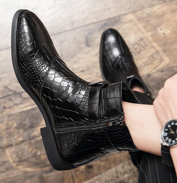 ワニ柄 型押し メンズ ビジネス シューズ ブラック 27.5㎝ PUレザー 革靴 靴 カジュアル 屈曲性 通勤 軽量 インポート品【n158】