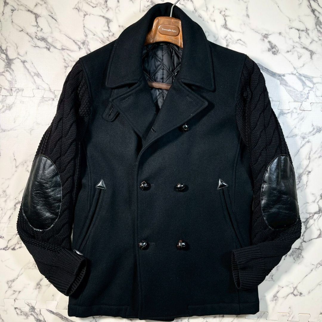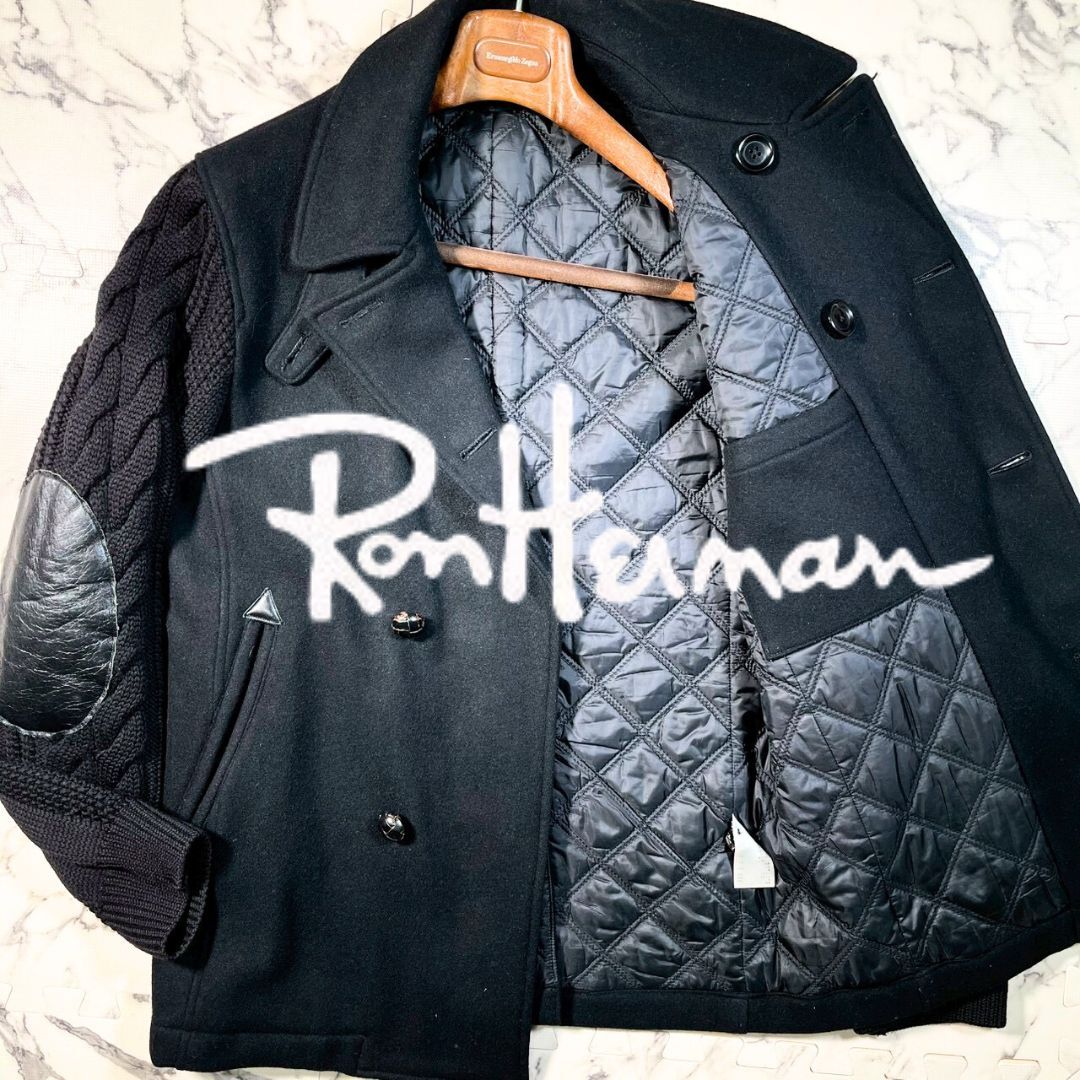 極美品/ニット切替/アンゴラ(ML位)●ロンハーマン RHC ウール ニット ジャケット コート ブラック 黒 RonHerman メンズ アウター ブルゾン