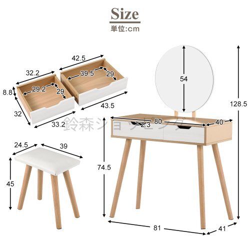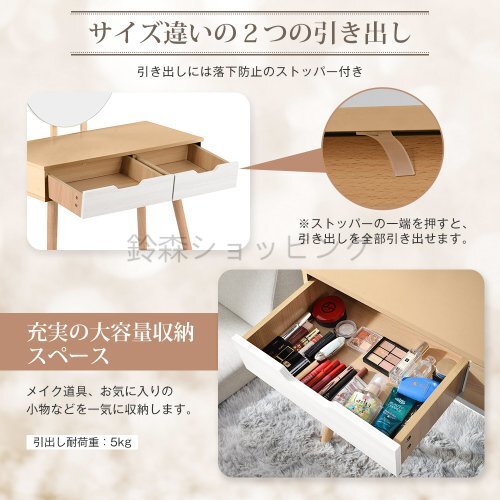 • 天板は幅80CM*奥40CMと、スペースを取りすぎないスリムさ 化粧品からアクセサリーまでしっかり置くことができます。