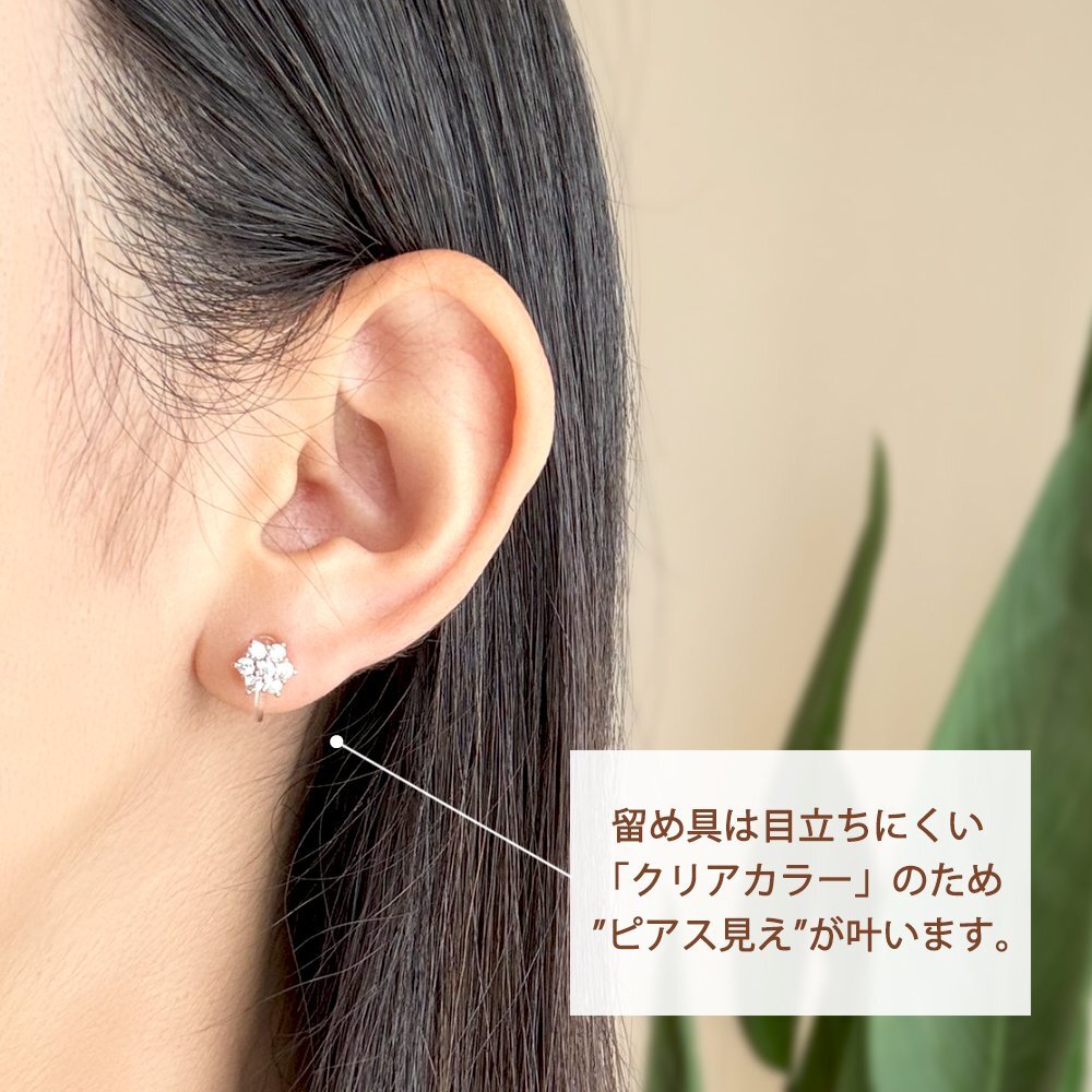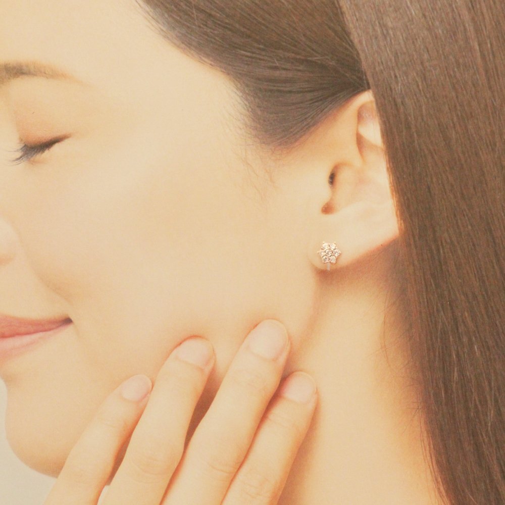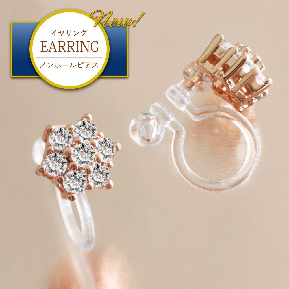 新品/イヤリング/K18GP/レディース/フラワー/花/18金/18kコーティング/ピンクゴールド/小ぶり/ピアス見え/樹脂/金属アレルギー/ダイヤ/CZ