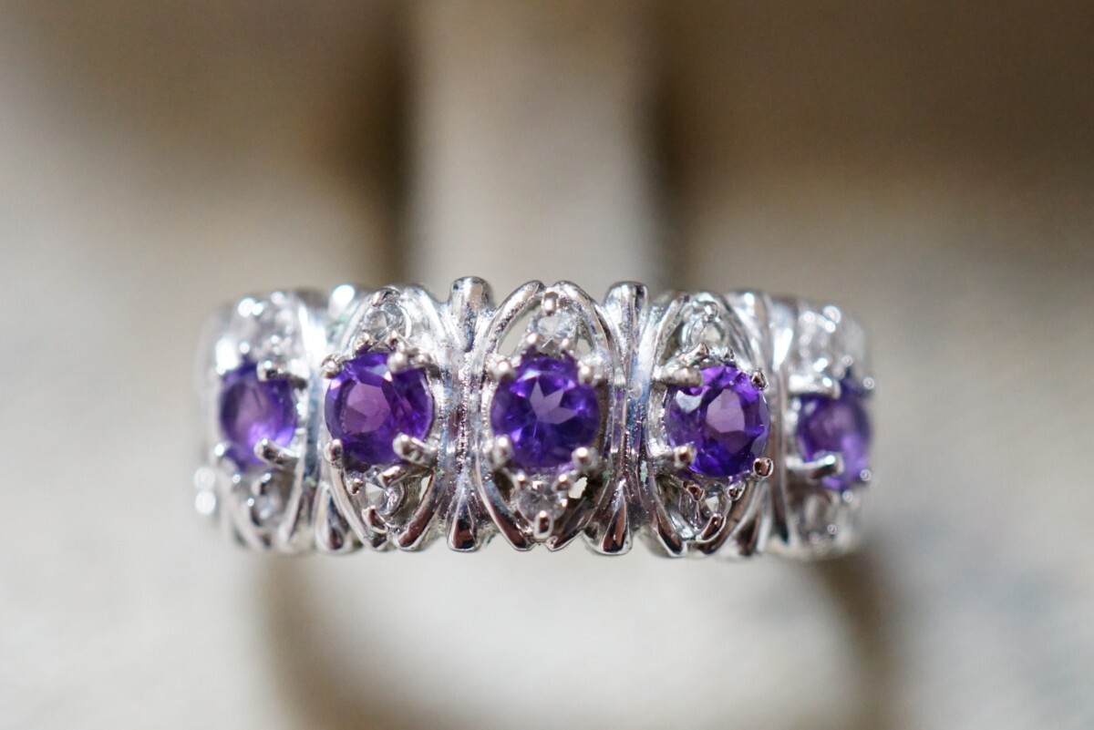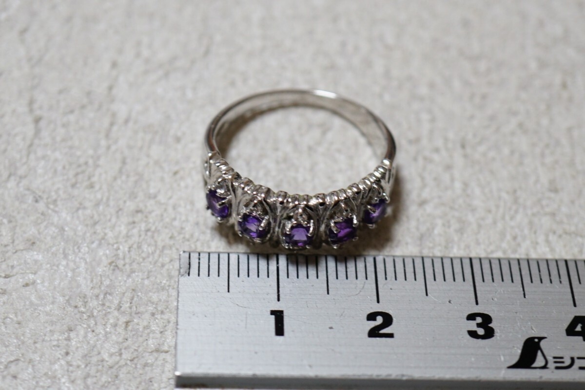 517 天然アメジスト リング 指輪 ヴィンテージ アクセサリー SILVER刻印 天然石 色石 宝石 カラーストーン 装飾品