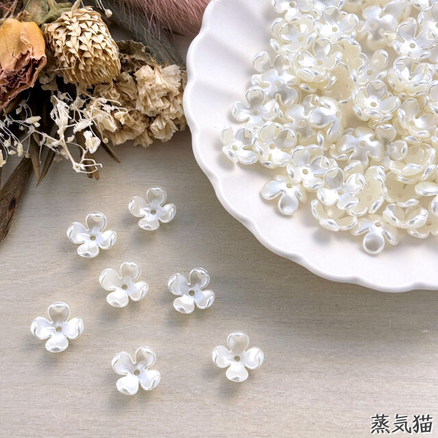 b9880 フラワービーズ 4弁 パールホワイト 100個です。チャーム、ピアス、イヤリング、ビーズ、レジン等、様々な作品のアクセサリーパーツとして。