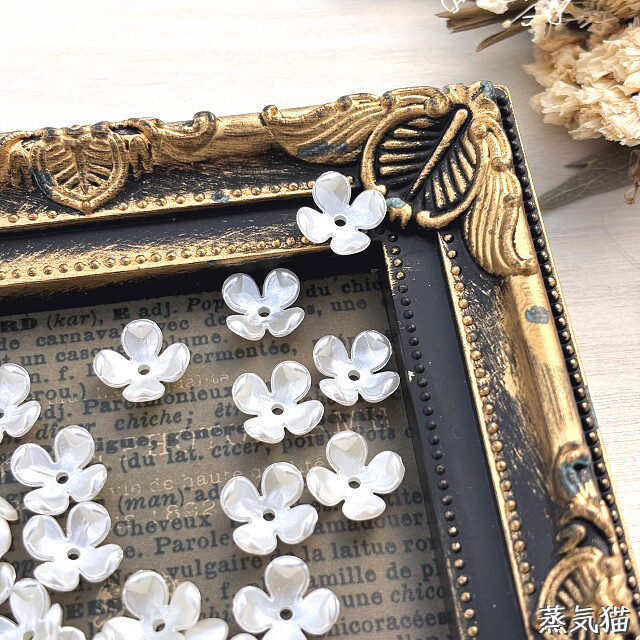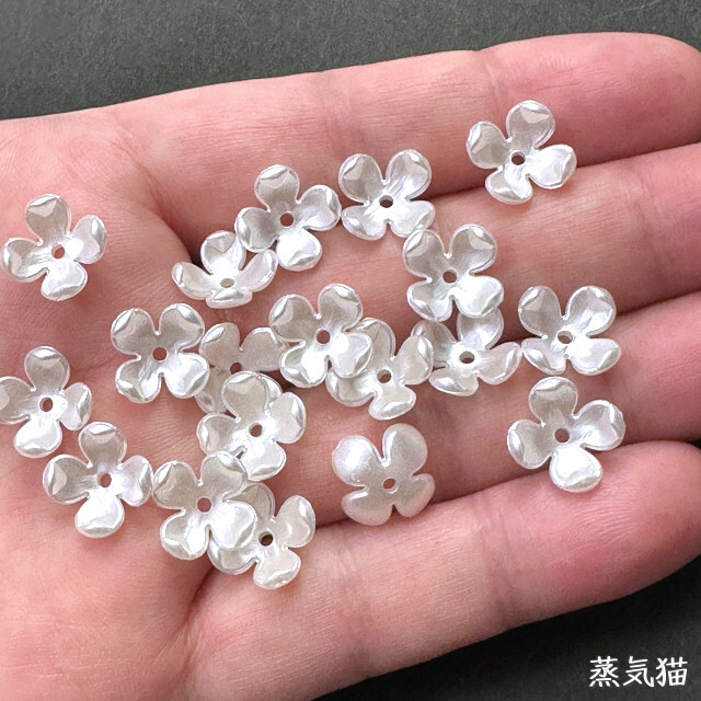 b9880 フラワービーズ4弁 パールホワイト100個【花びらピアス イヤリング チャーム手作り材料ハンドメイド アクセサリー素材】蒸気猫パーツ
