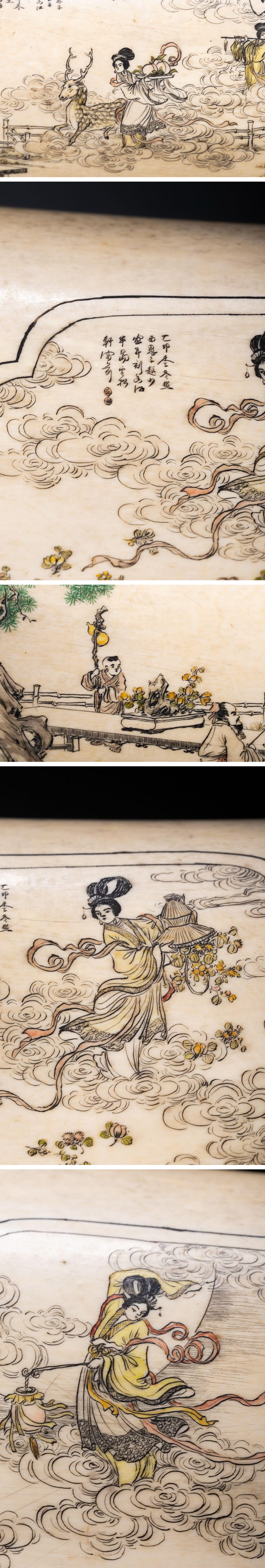 【雲錦】某有名オークション購入 時代物 特殊白材 在銘 4.5㎏中国人物文彫り物 一本練物 古置物 古美術 時代コレクション7L10-164S8