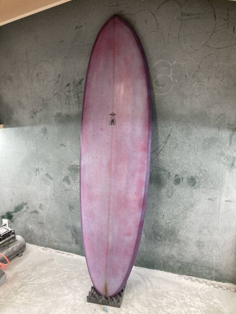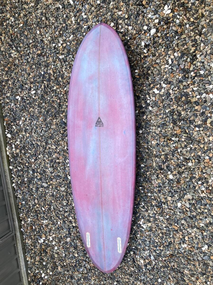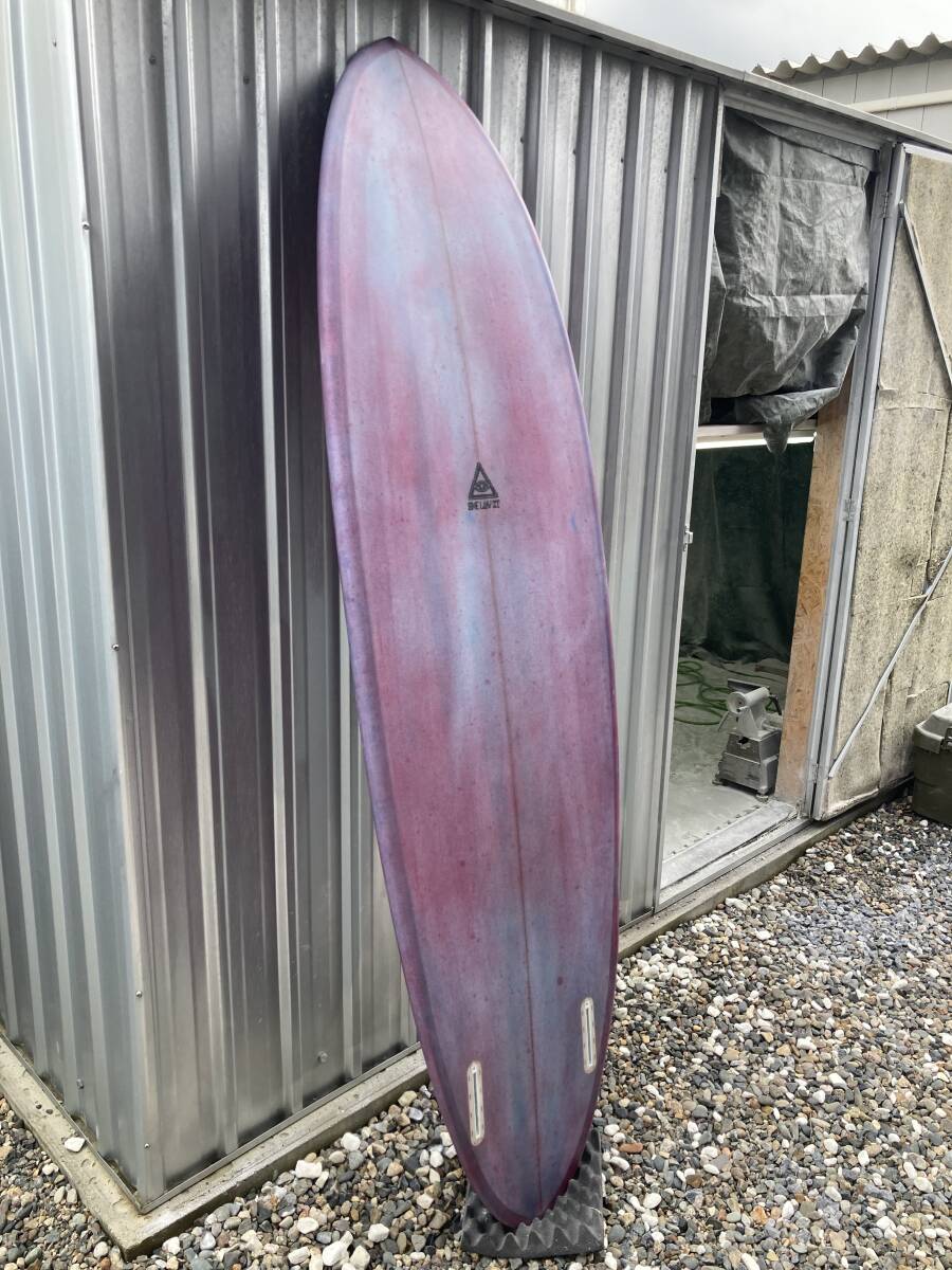 ボリュームがあるツインピンのミッドレングスです。レールはミディアムボキシー、ロッカーは程よくつけてあります。コンケーブはシングルの中にダブルが入っています。サイズ以上に軽快に動いてくれます。