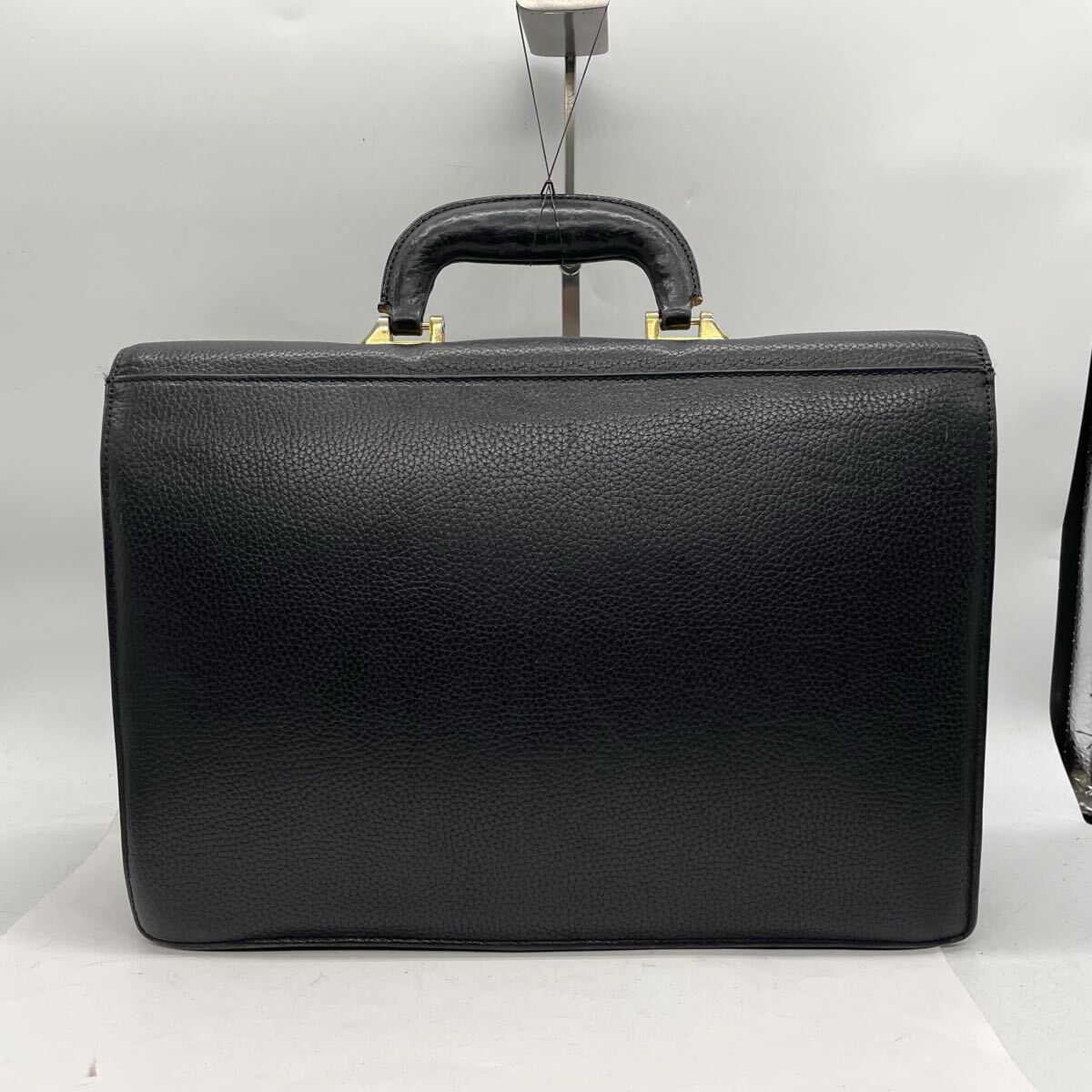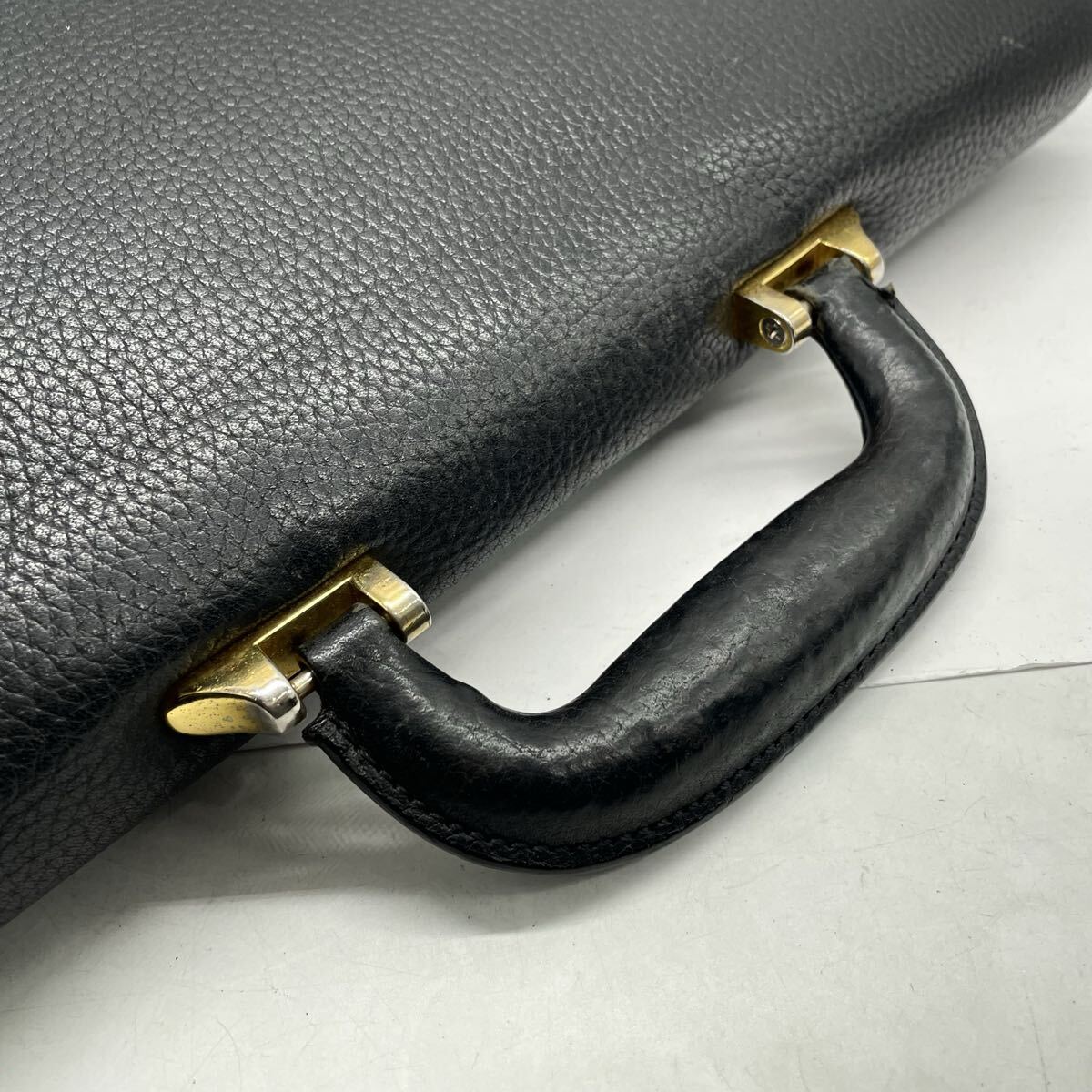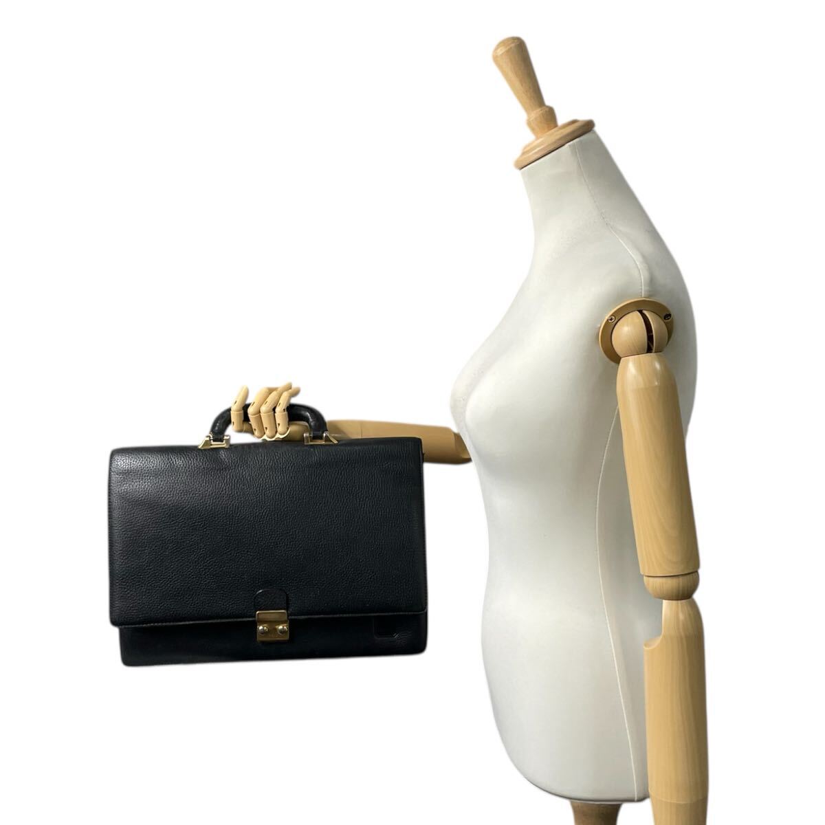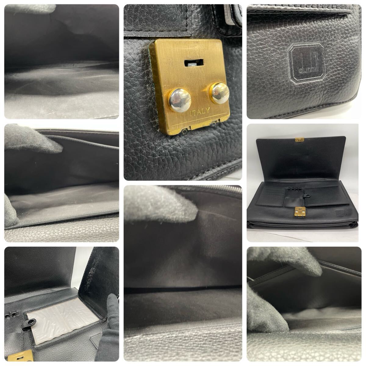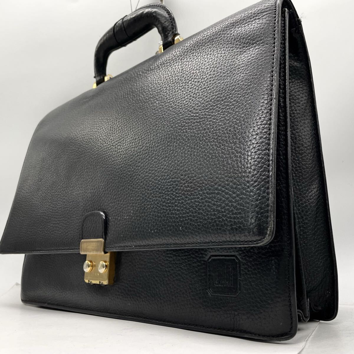 【良品】dunhill ダンヒル レザー ブリーフケース ビジネスバッグ 黒 シボ革 本革 大容量 ブラック メンズビジネス 自立型