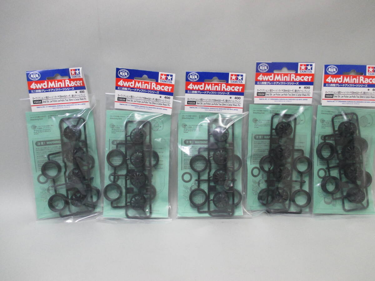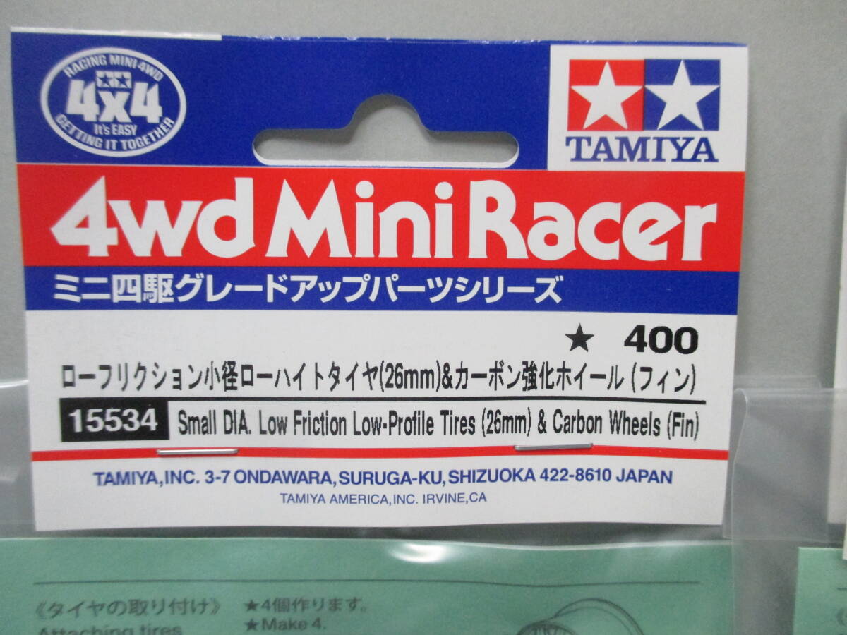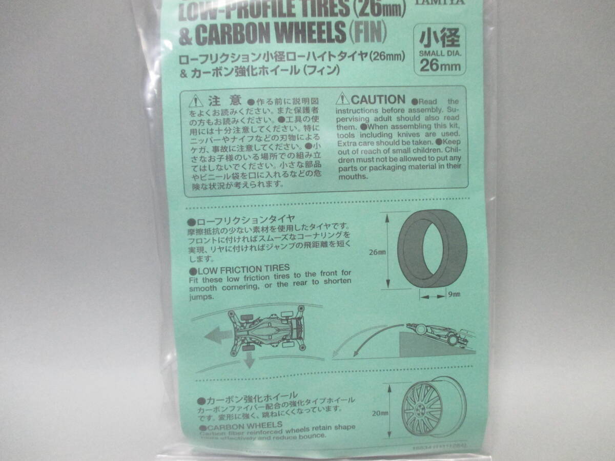 タミヤ/ミニ四駆 ローフリクション小径ローハイトタイヤ(26mm)&カーボン強化ホイール(フィン)5個まとめて