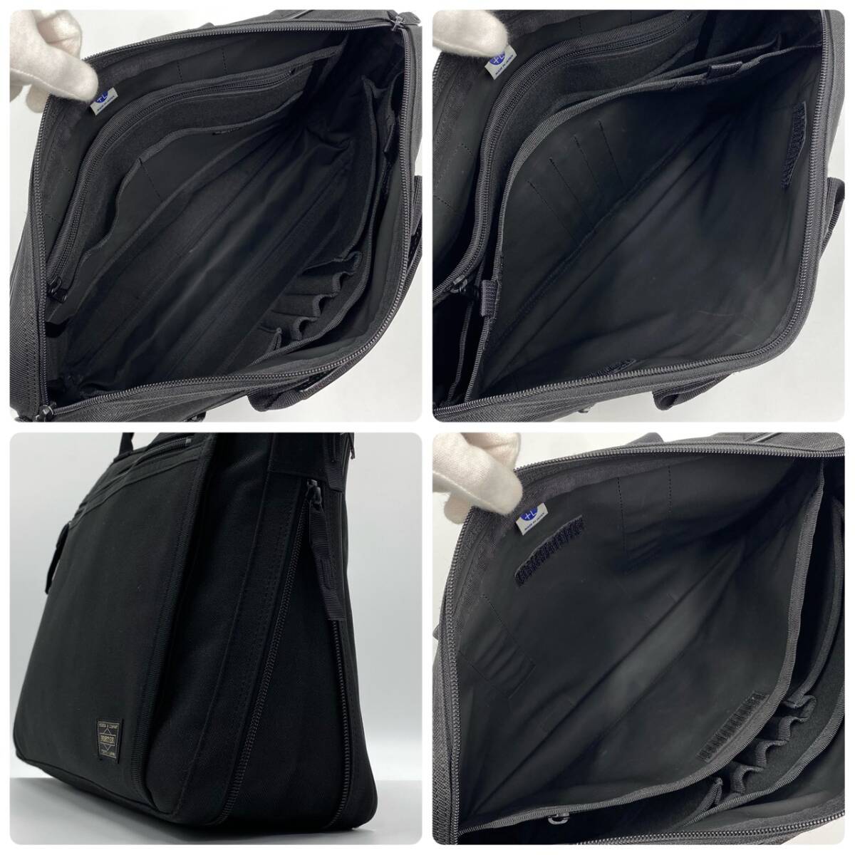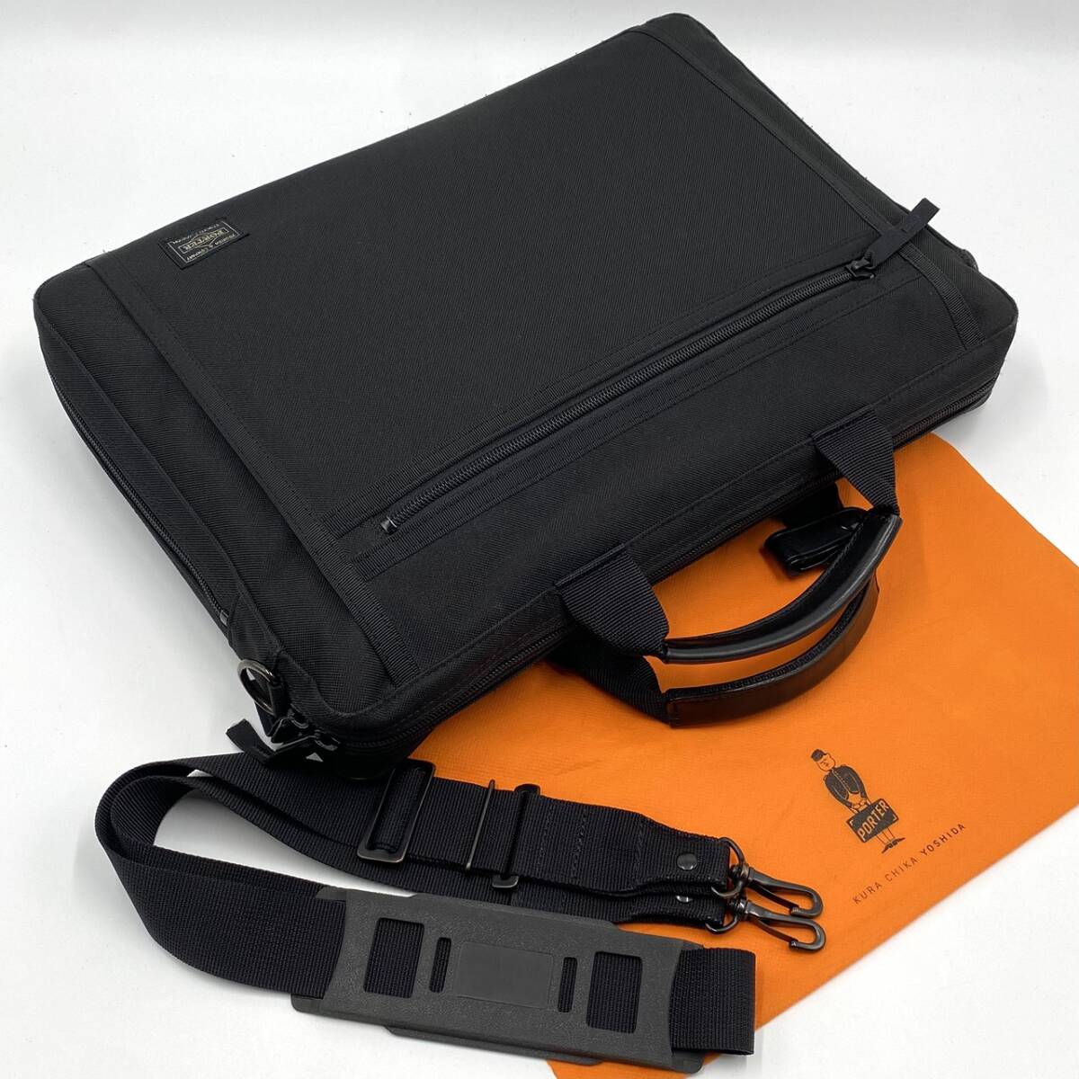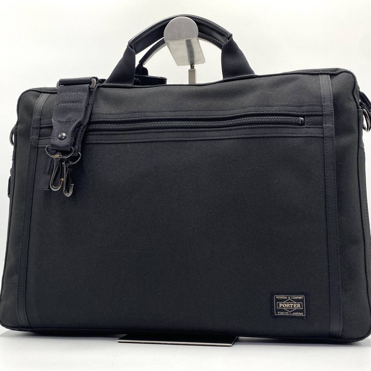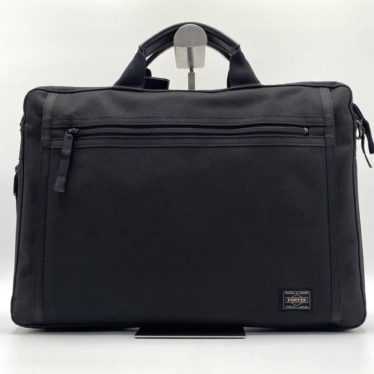 1円【美品】ポーター PORTER 2way ビジネスバッグ ブリーフケース レザー 本革 A4 ロゴ メンズ ハンド ショルダー ブラック 黒 大容量