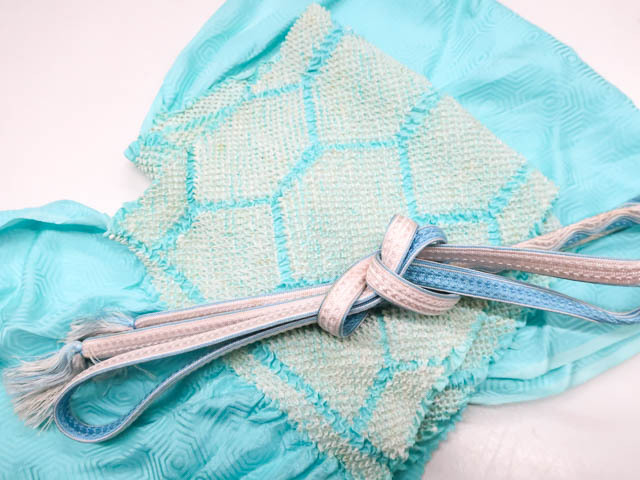 リサイクル商品のため、帯締め、帯揚げの所々しみがございますが、ご使用頂けると存じます。 |
