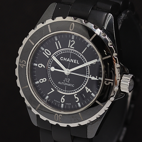 1円 稼働 シャネル J12 H0684 Y.R.98645 AT/自動巻 ブラック文字盤 メンズ腕時計 0695310 10OKT IGR